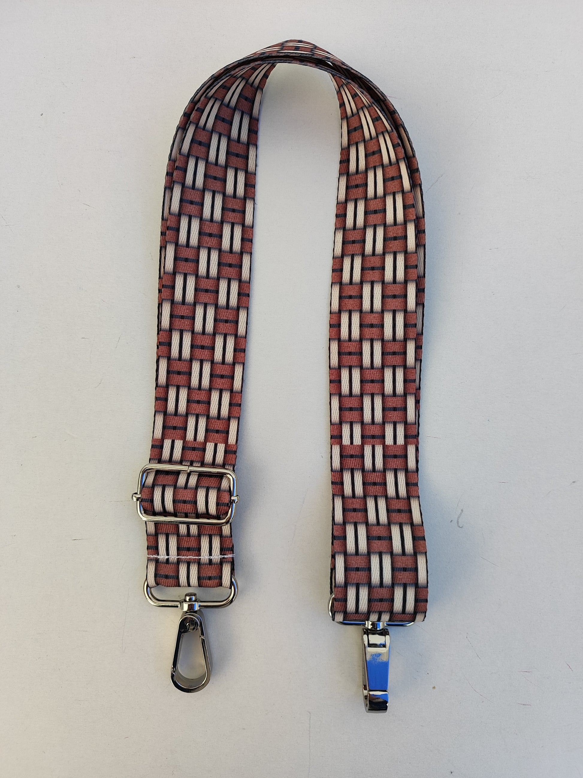 Ιμάντας για τσάντες, καφέ και εκρού γεωμετρικά σχέδια.