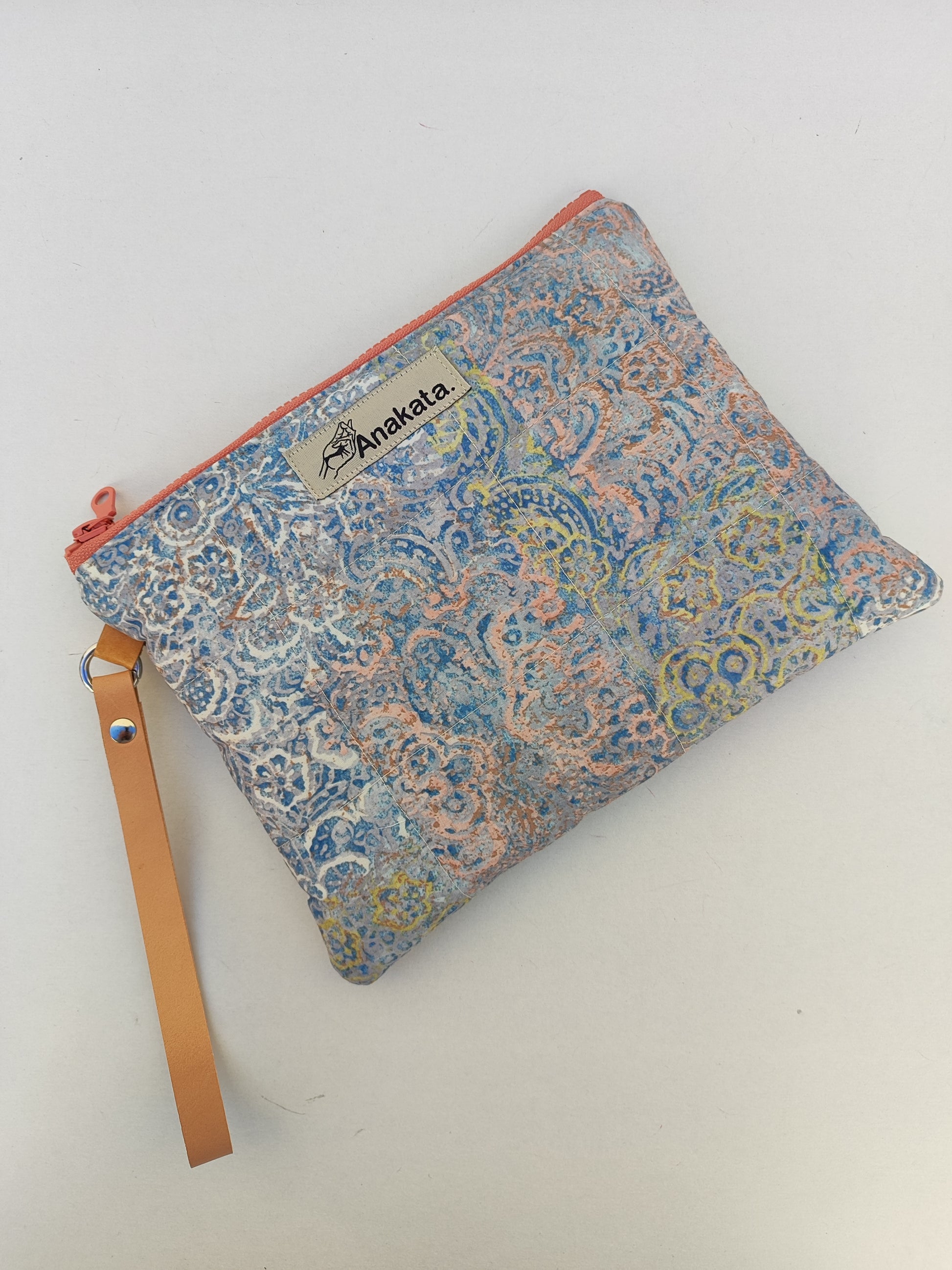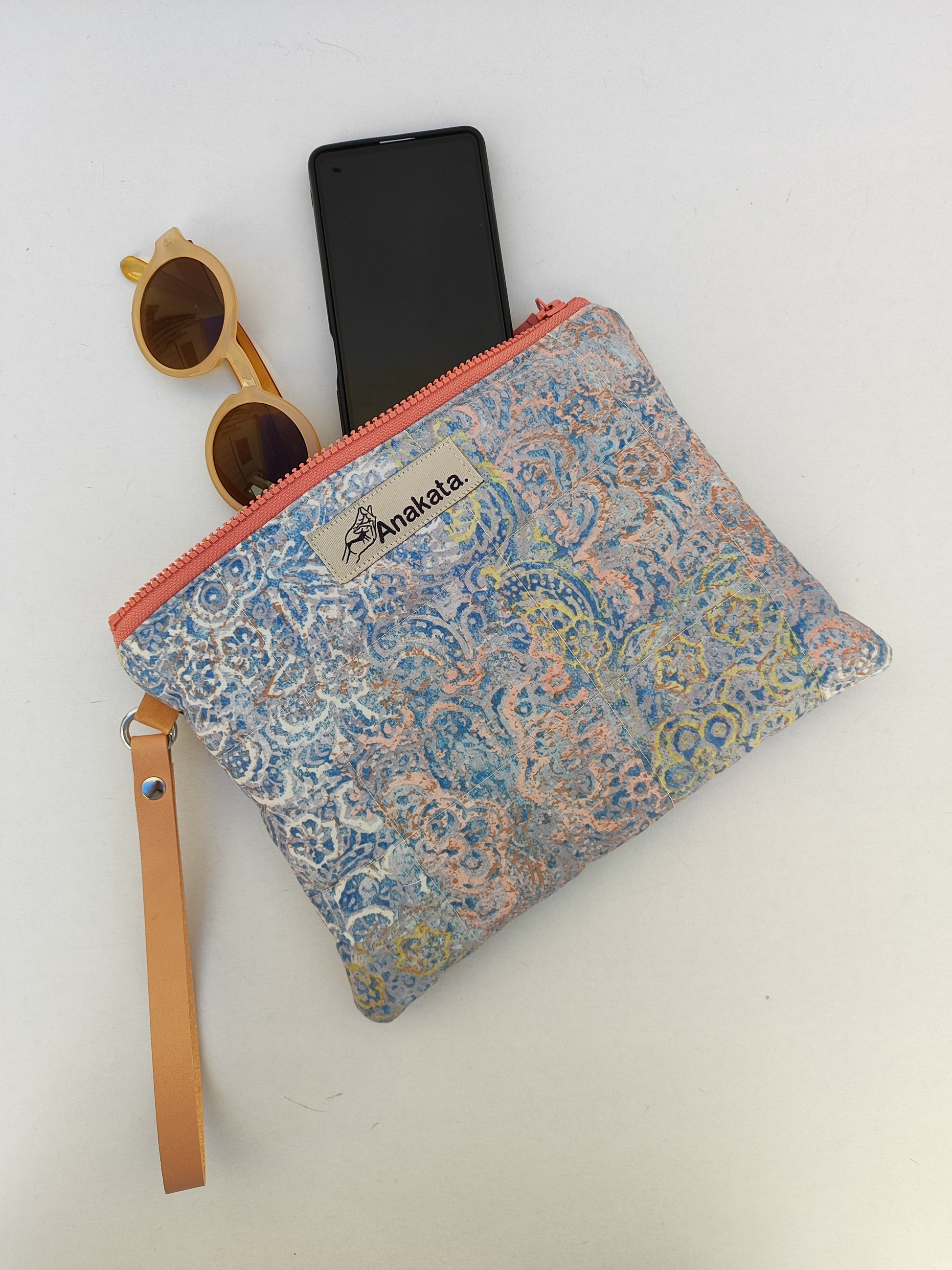 Χειροποίητο φλάφι καπιτονέ τσαντάκι με αδιάβροχη επένδυση και δερμάτινο αποσπώμενο λουράκι.