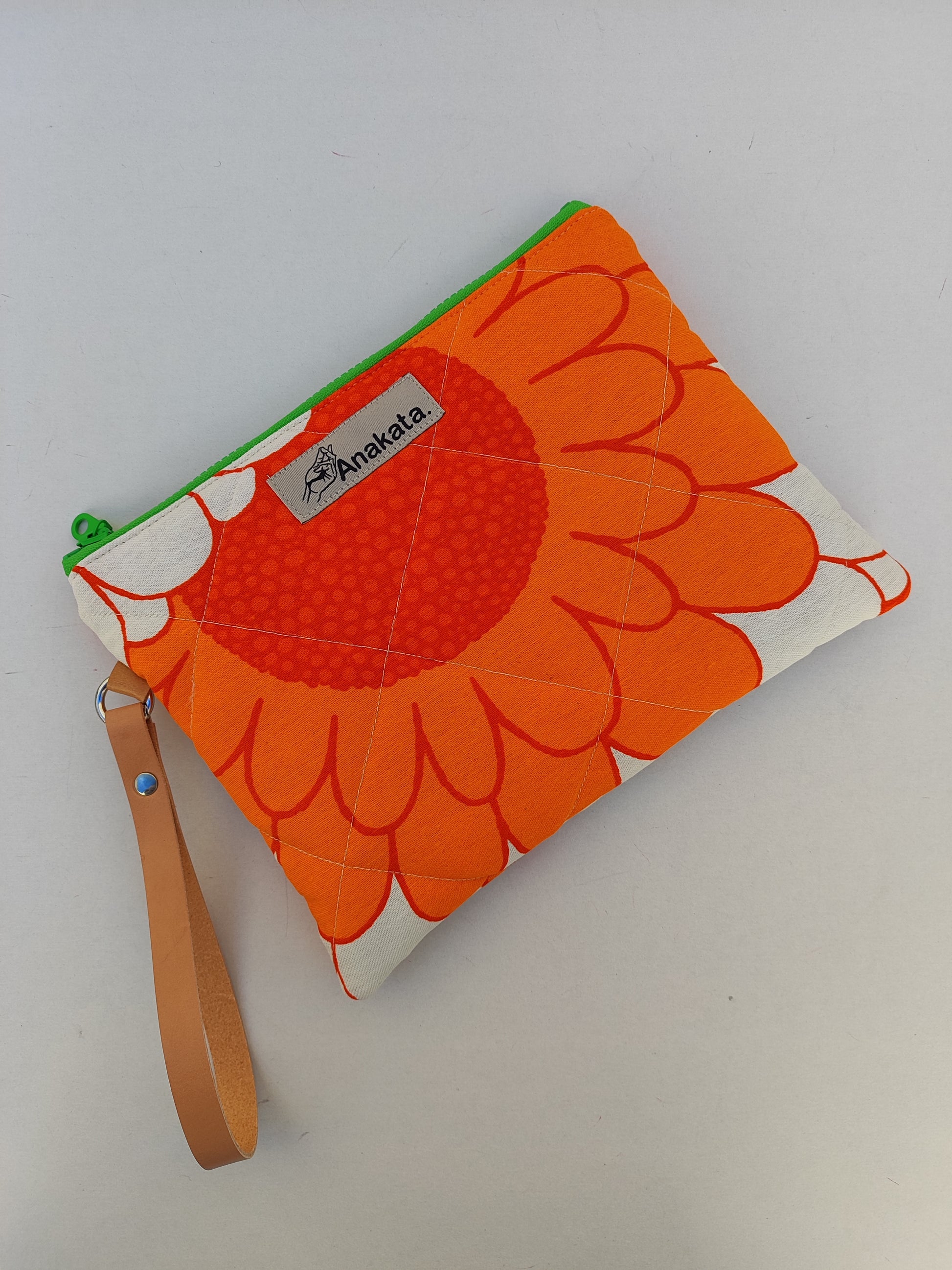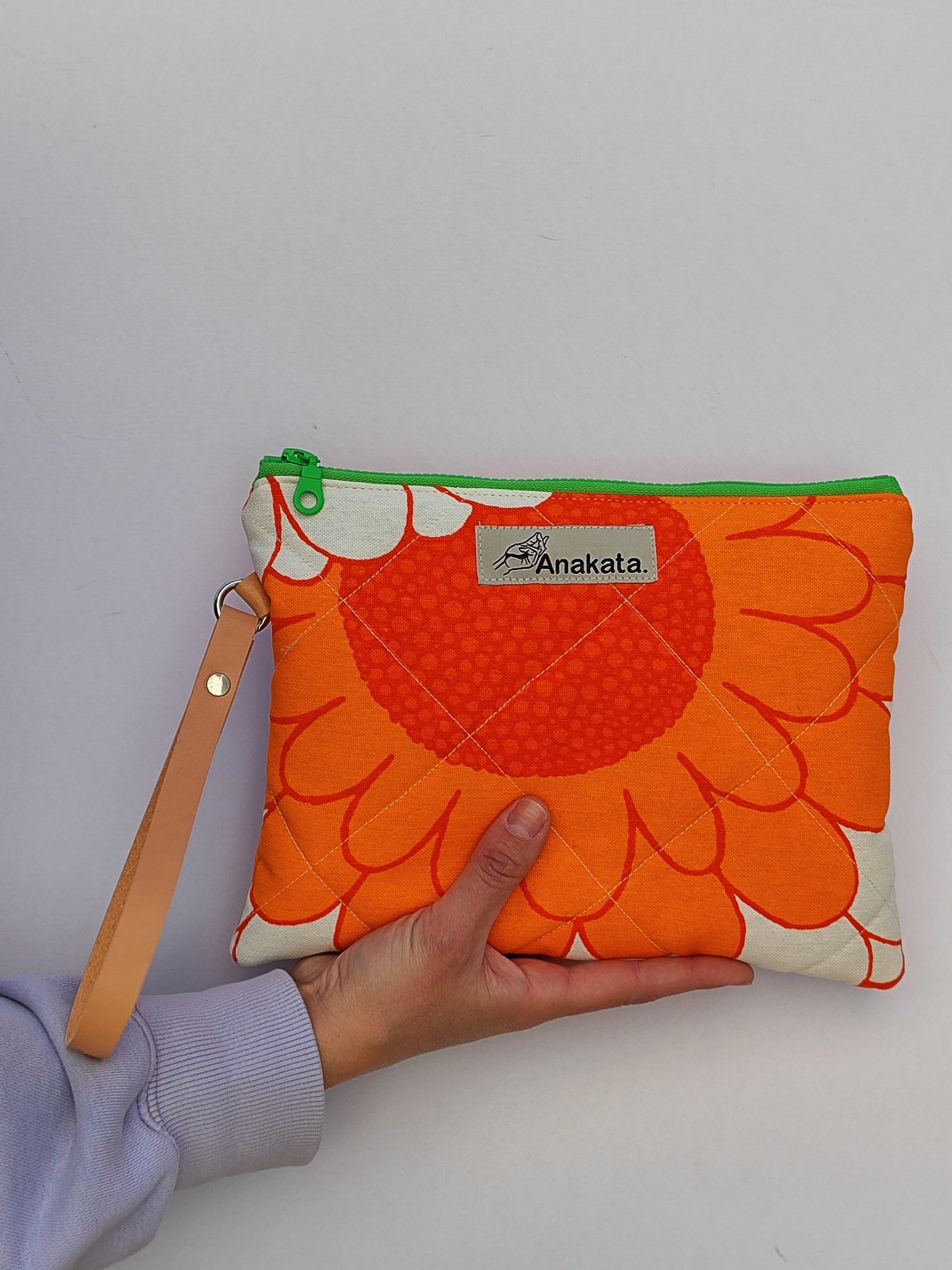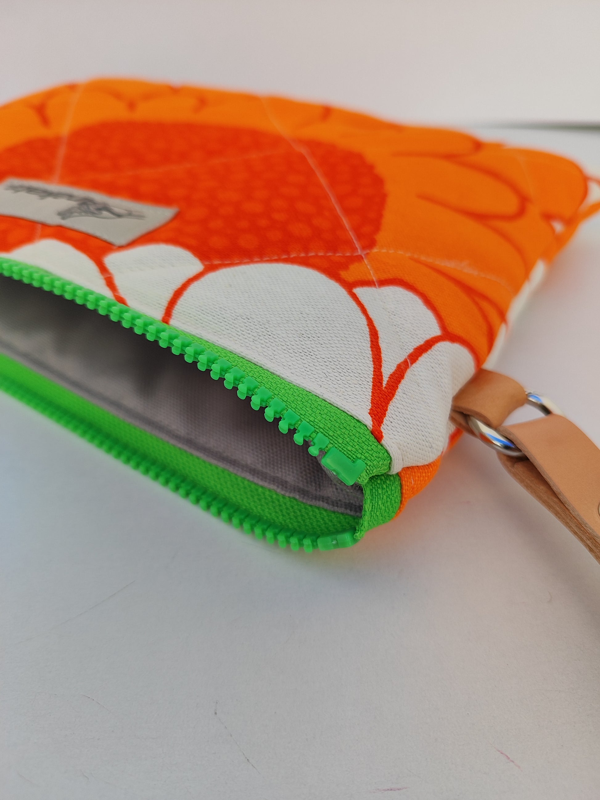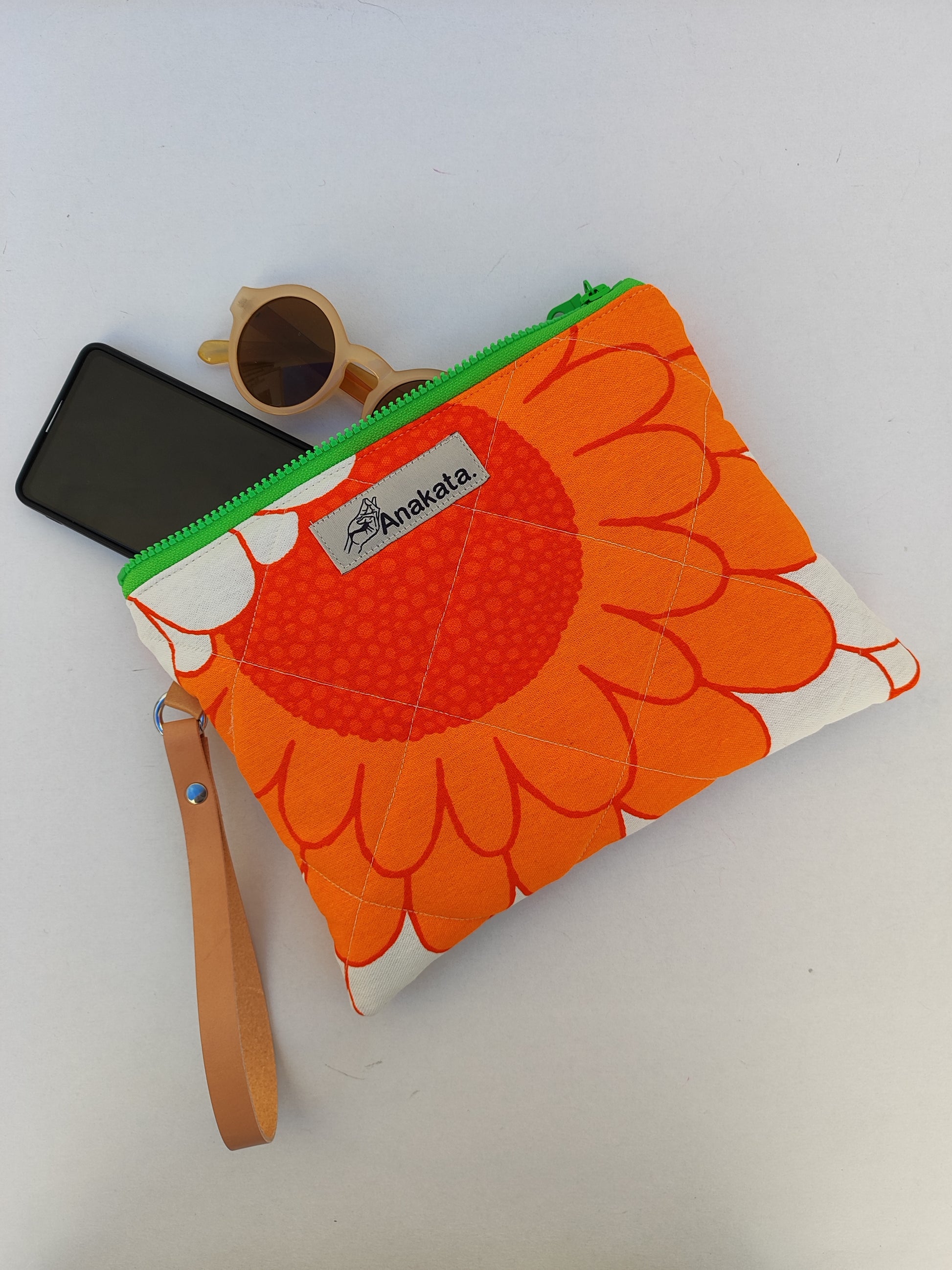 Καπιτονέ τσαντάκι με φερμουάρ ''πορτοκαλί λουλούδια''