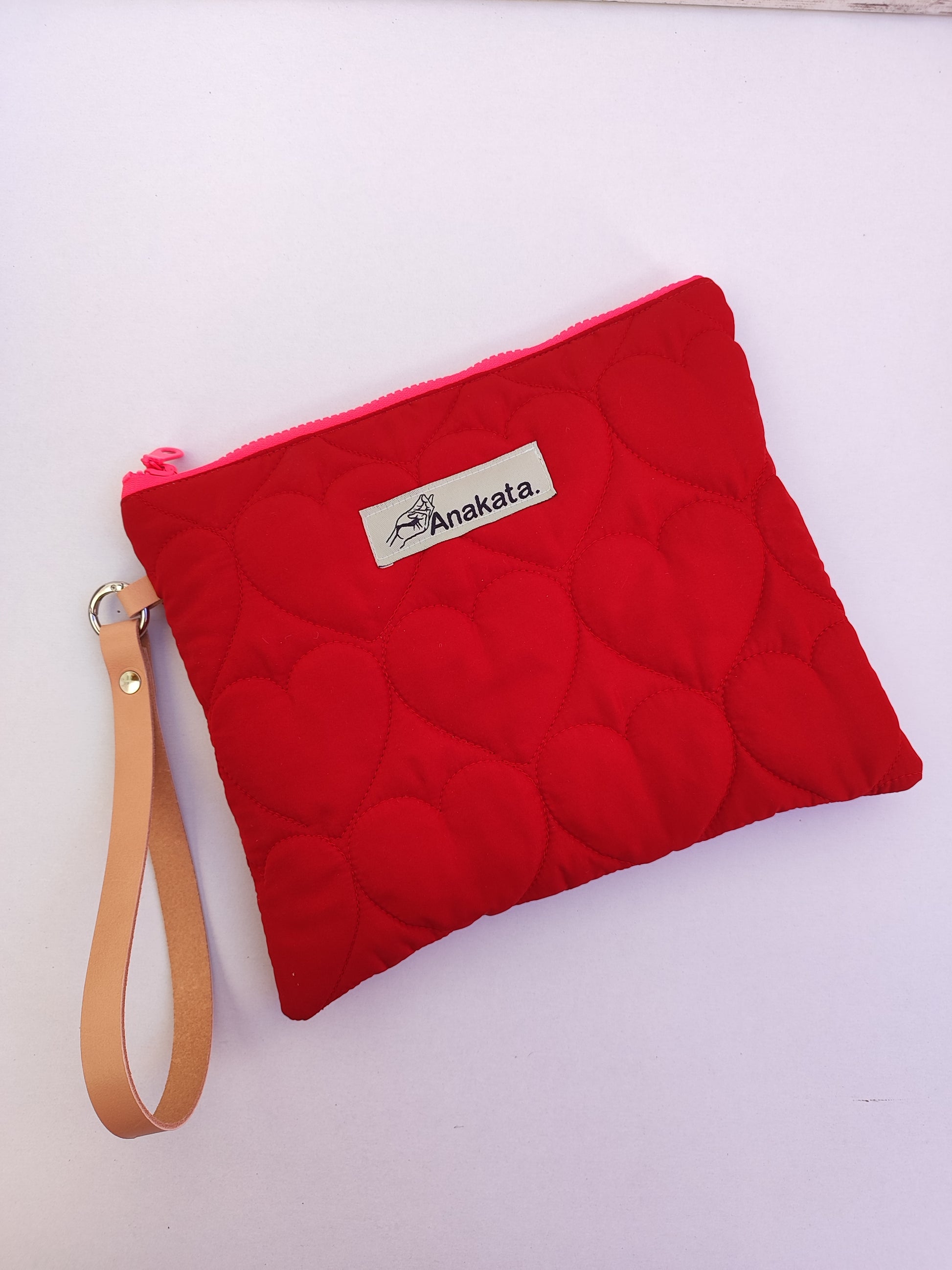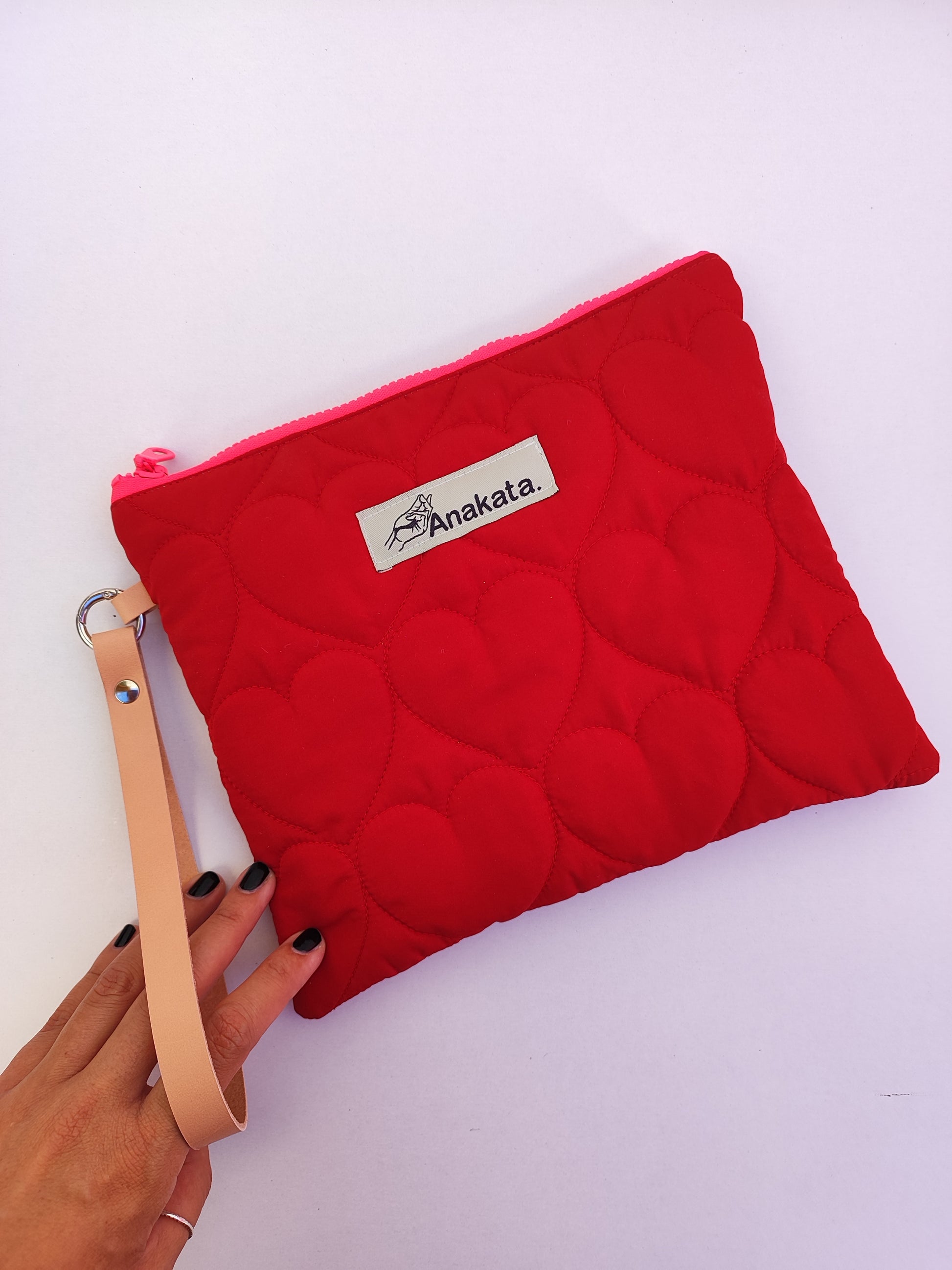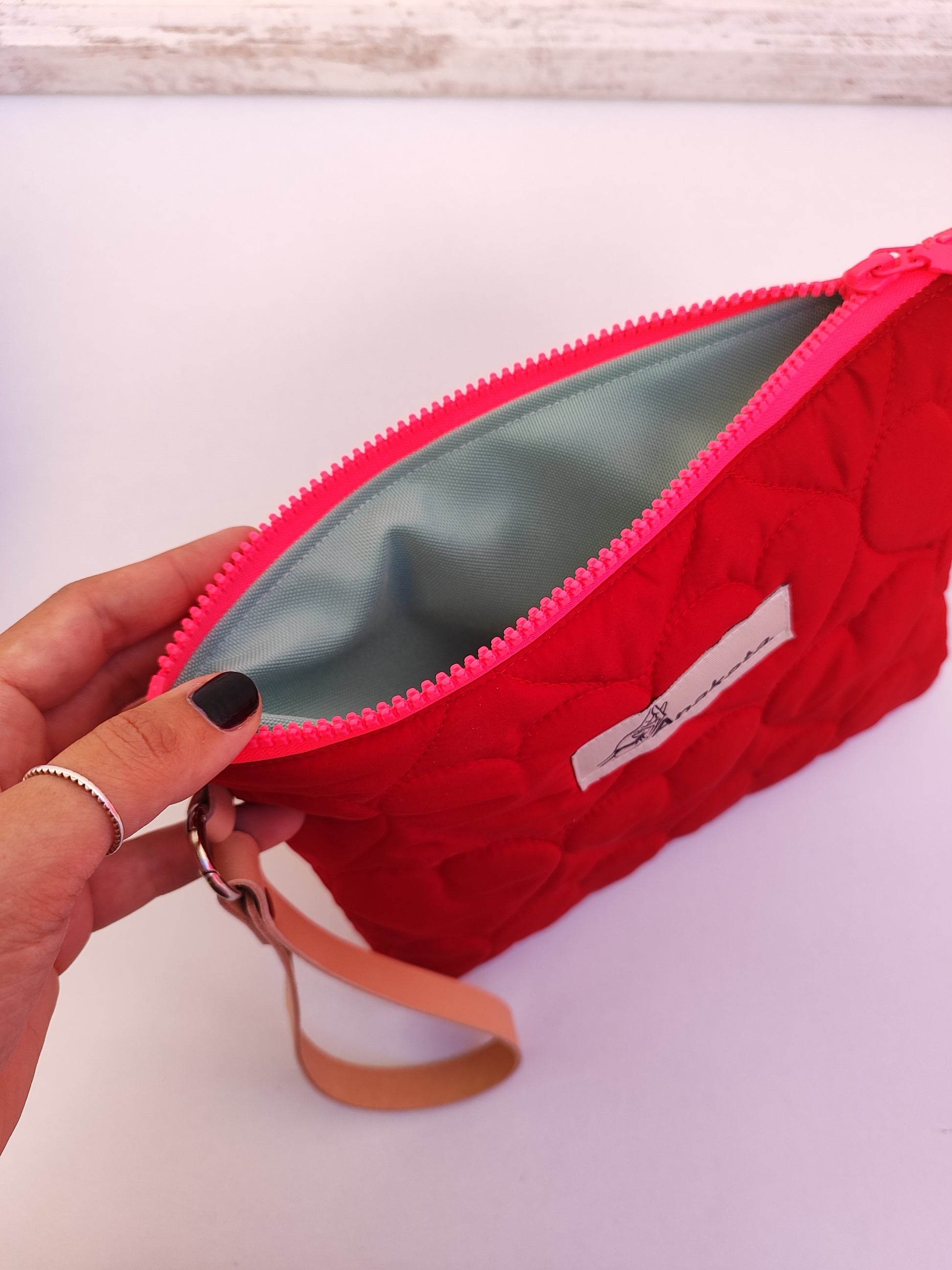 Καπιτονέ τσαντάκι με φερμουάρ ''κόκκινο με καρδιές''