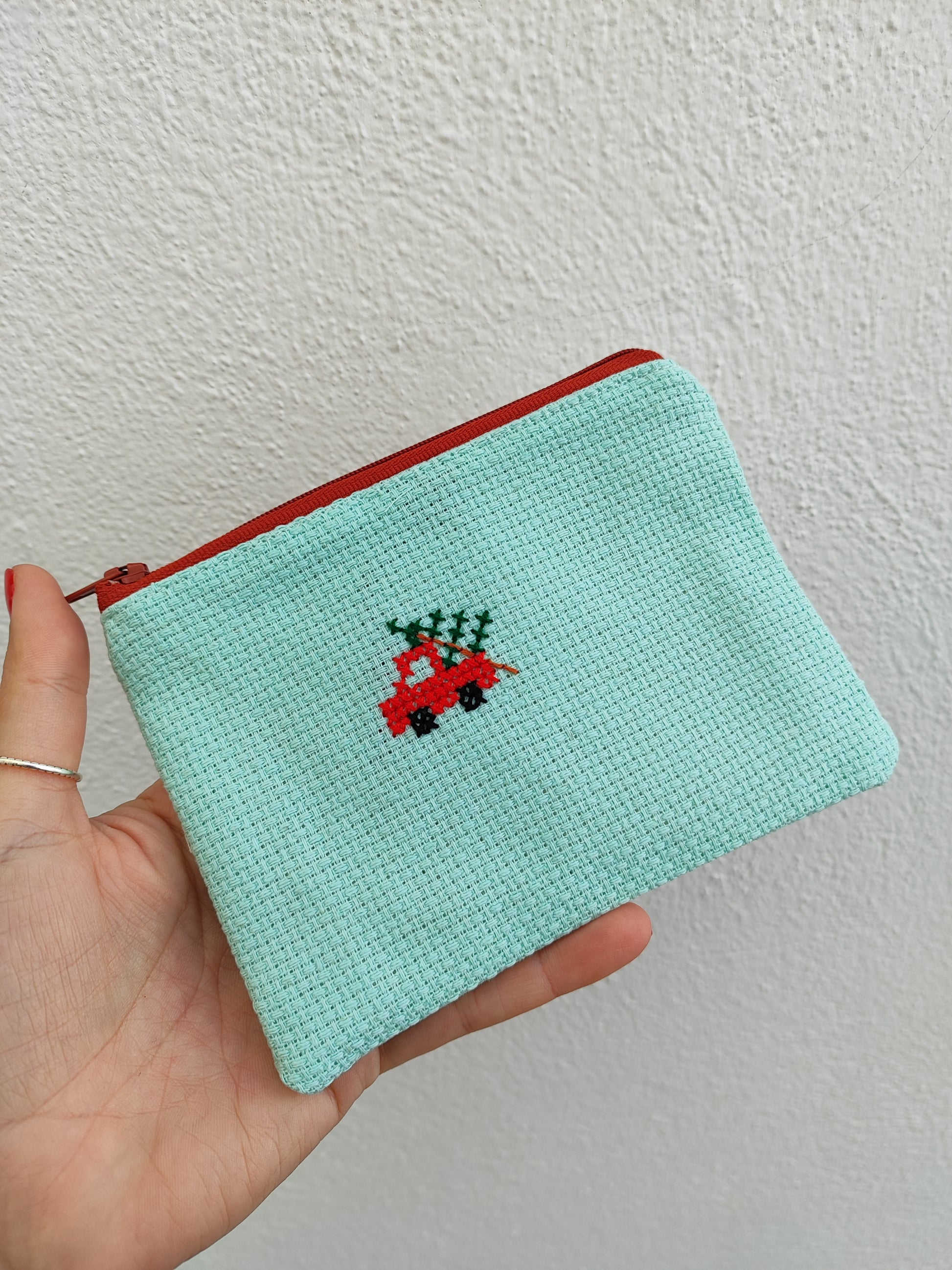 Κάθε πορτοφολάκι είναι κεντημένο με σταυροβελονιά στο χέρι.