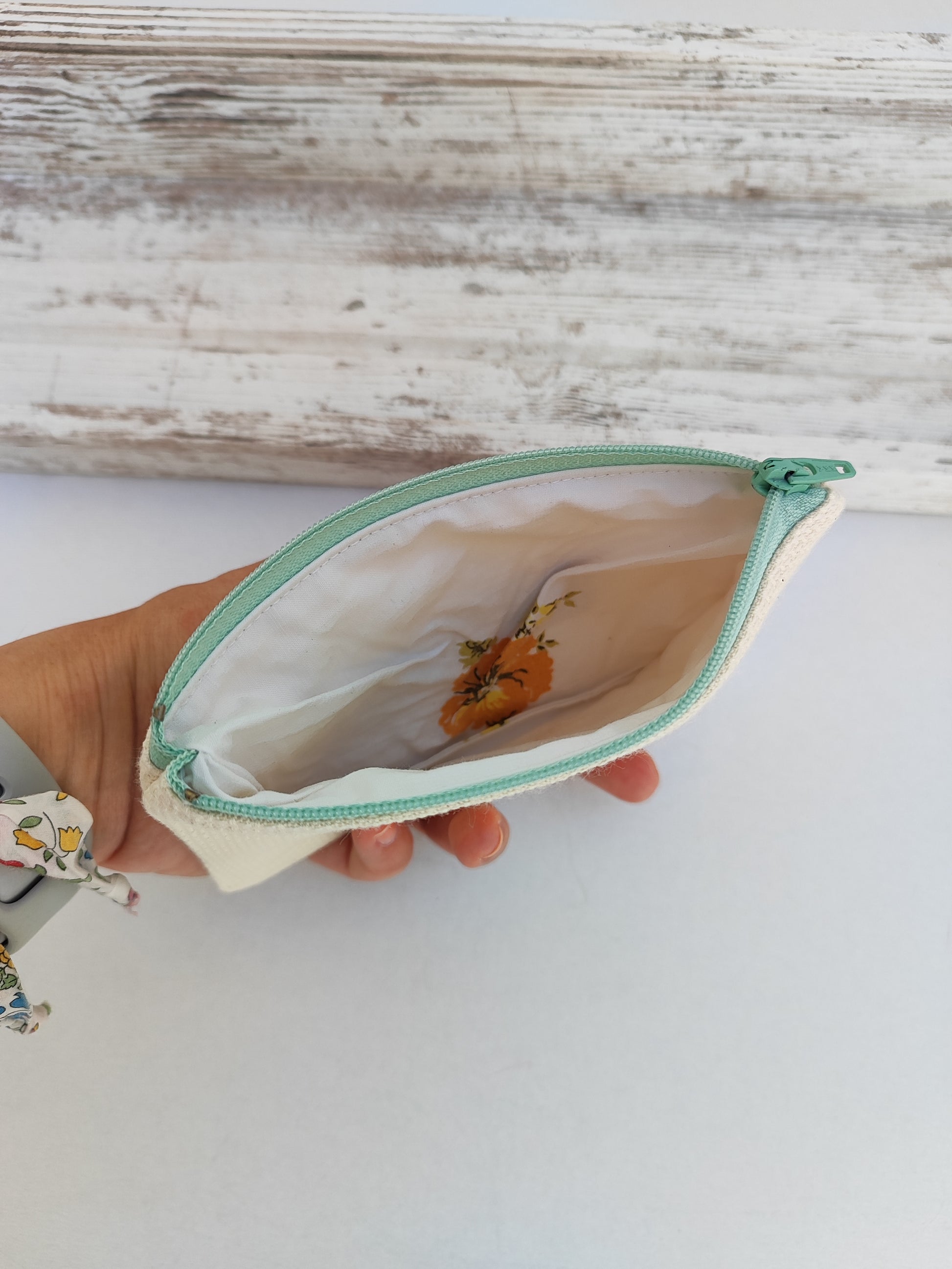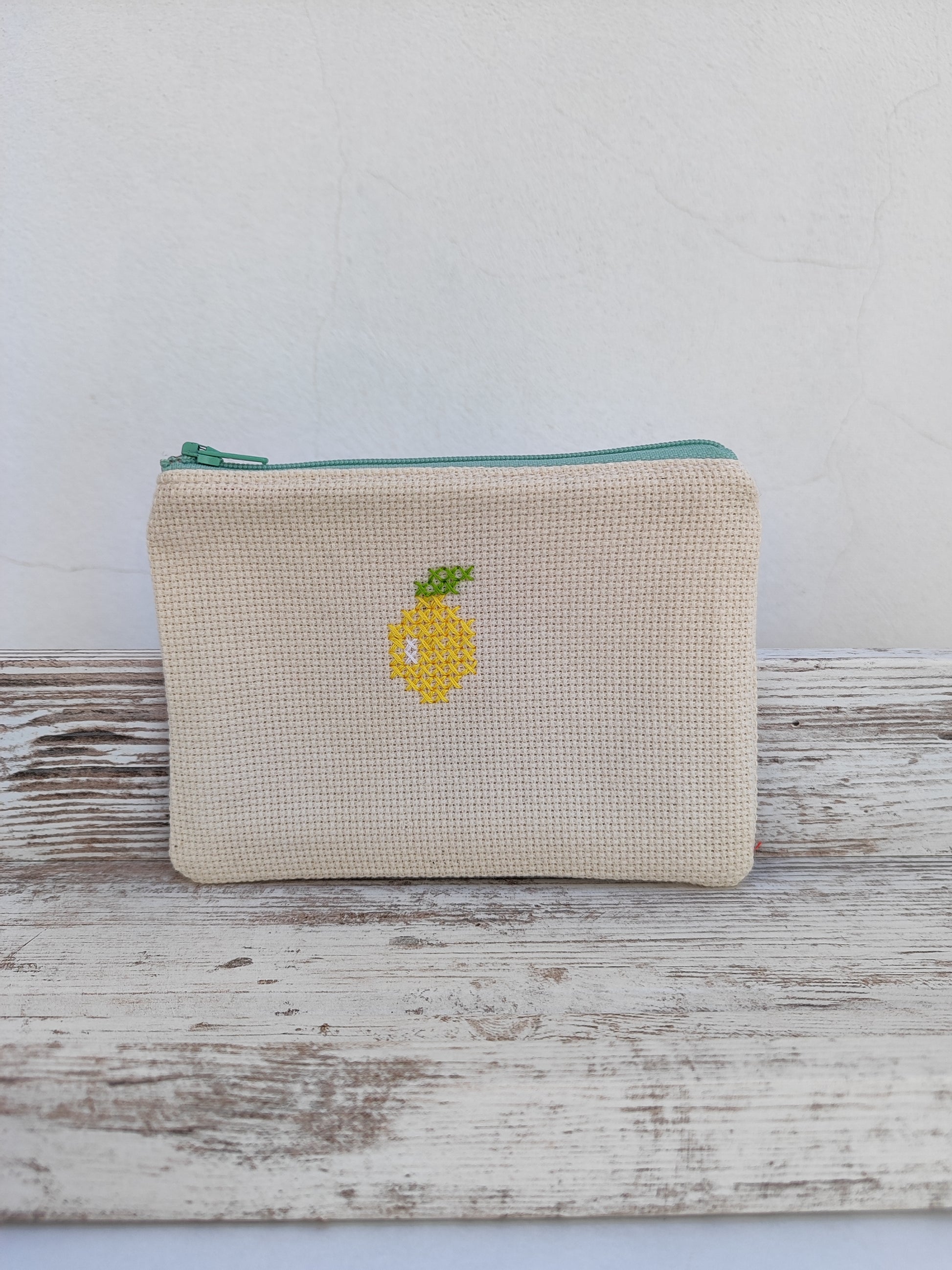 Μικρό κεντημένο πορτοφολάκι - εκρού με λεμονάκι