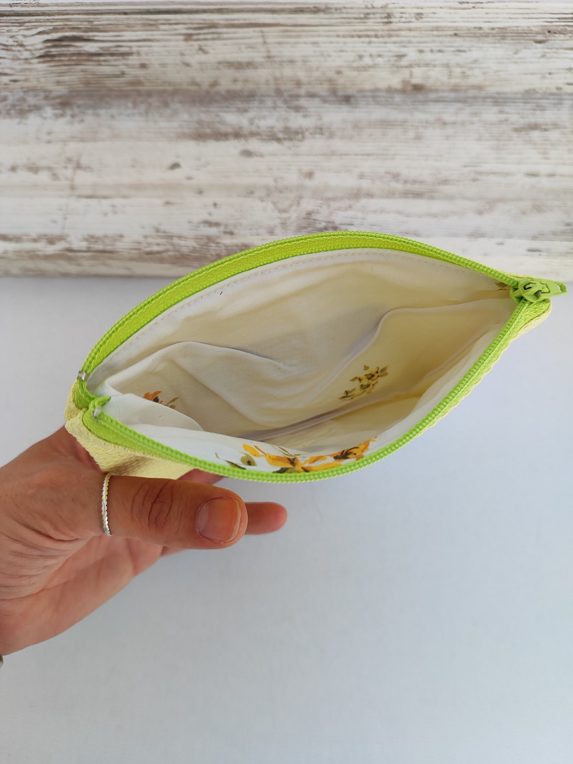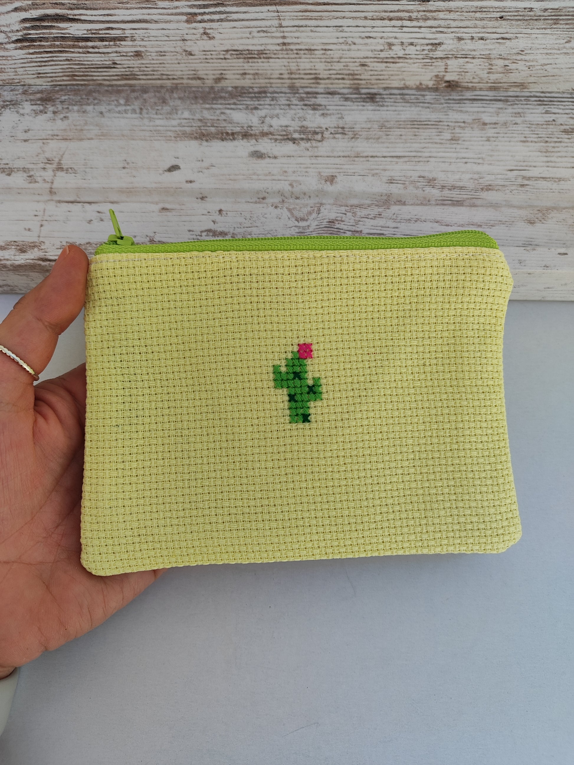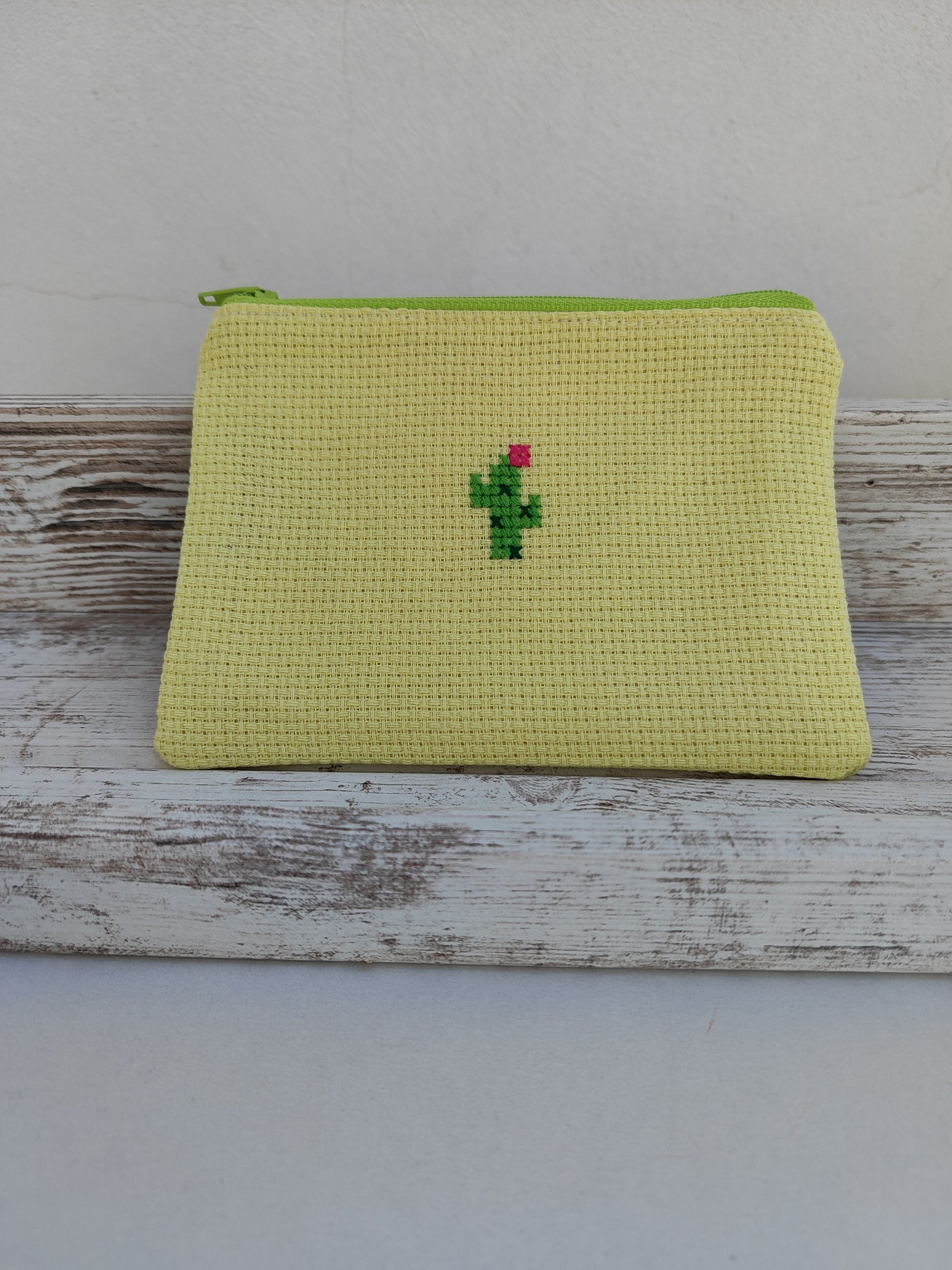 Μικρό κεντημένο πορτοφολάκι - κίτρινο παστέλ με κάκτο