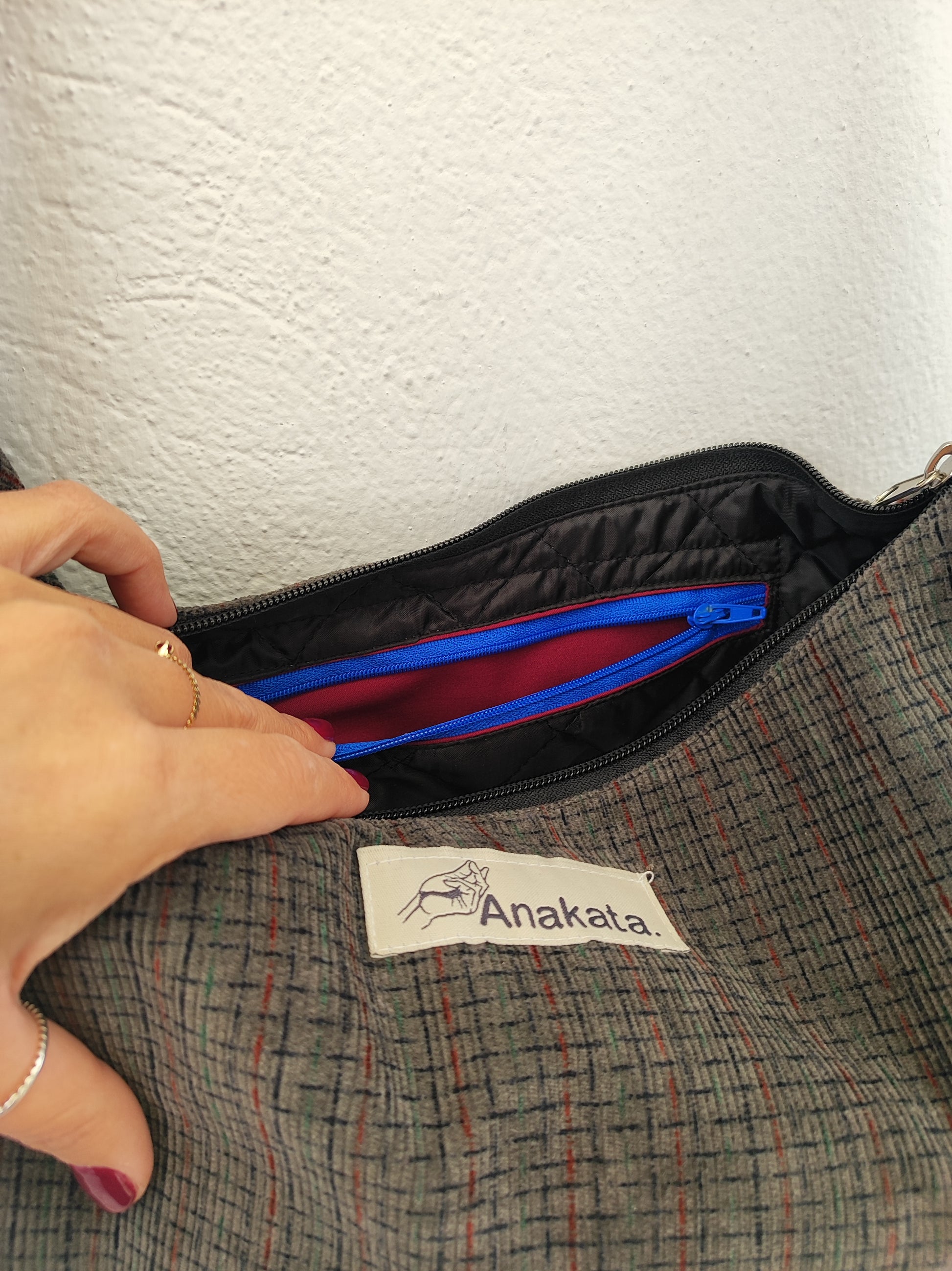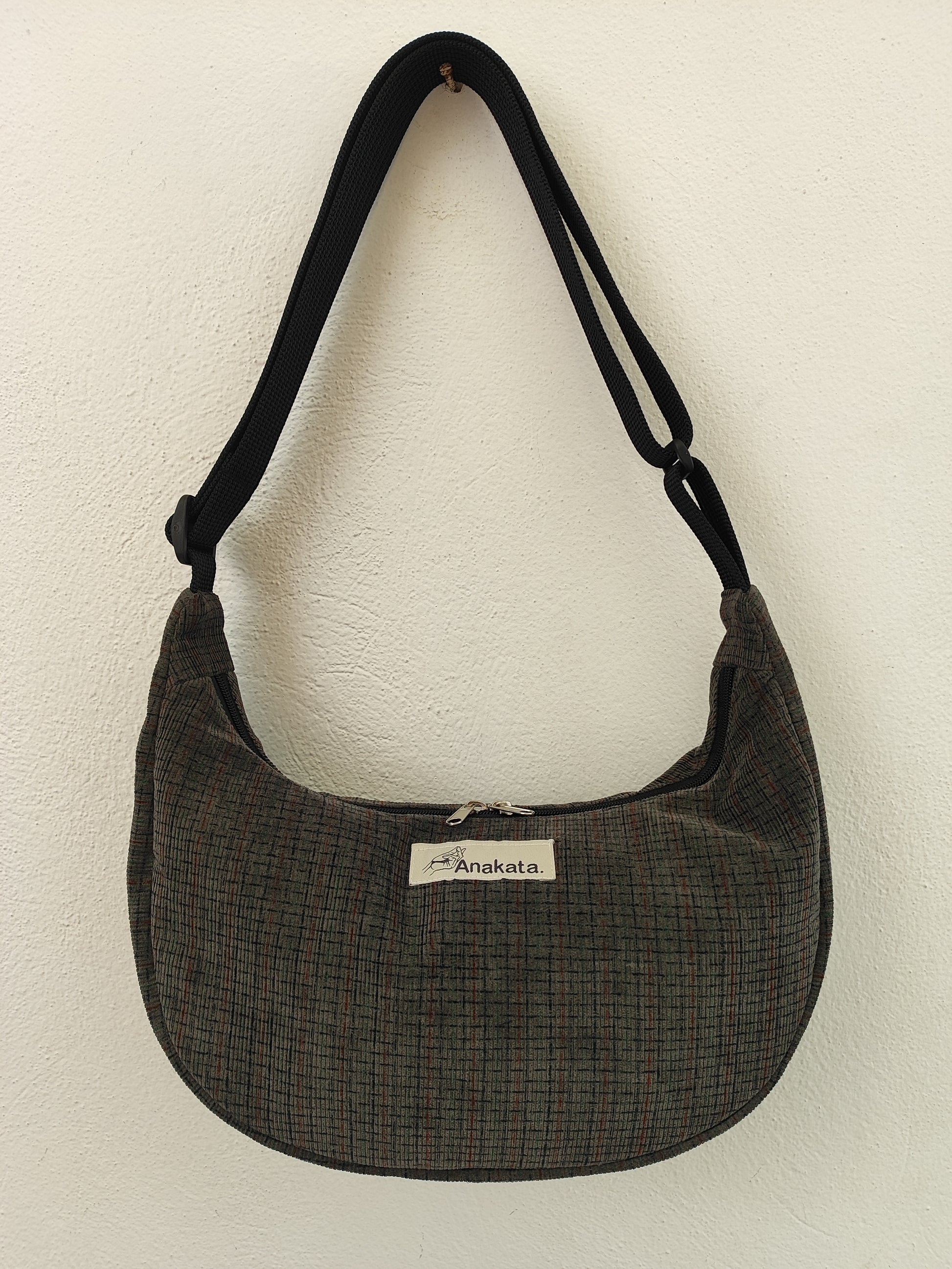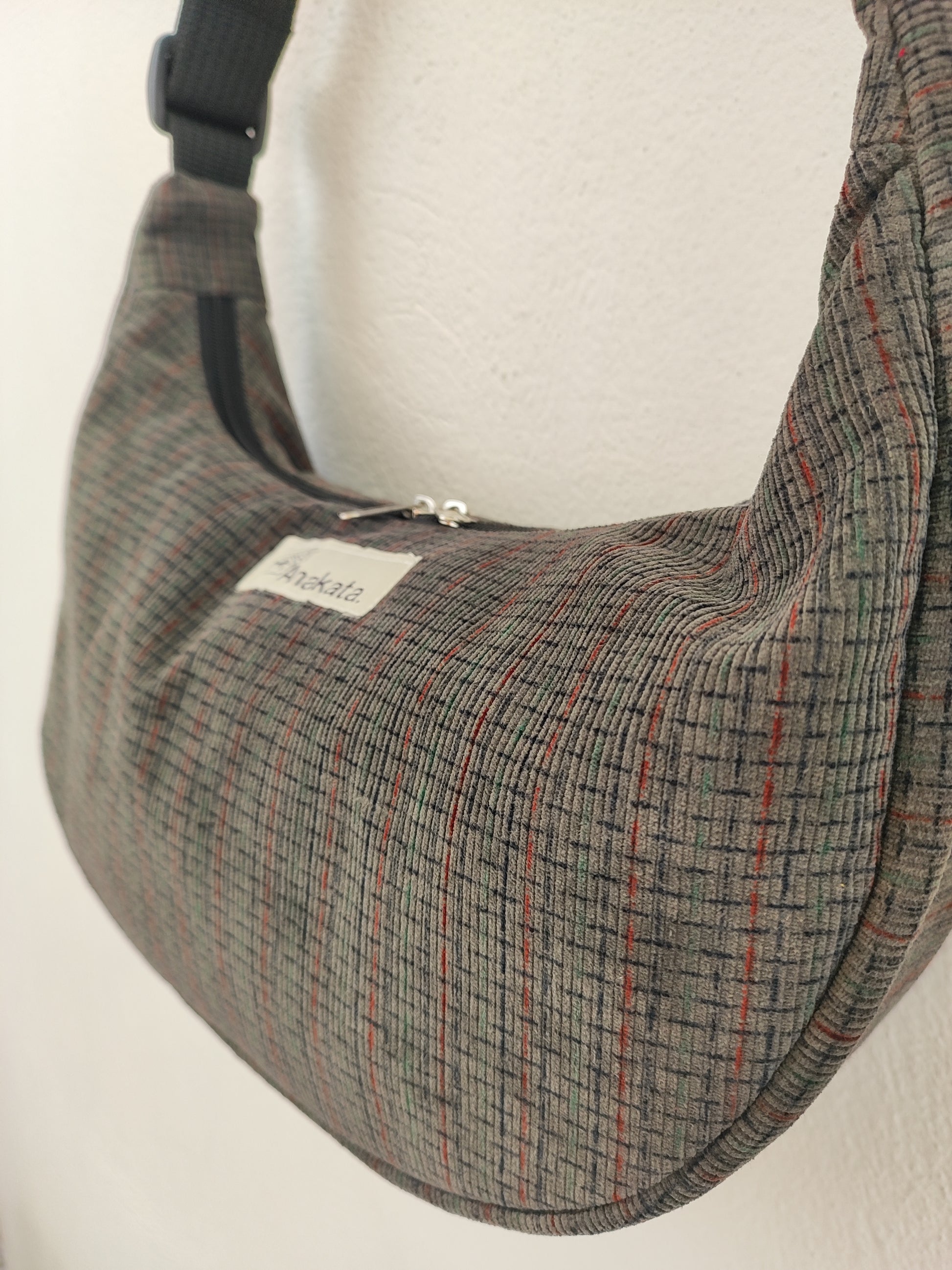 Τσάντα ''κρουασάν'' , γκρι κοτλέ με ρίγες, τσάντα ώμου ή χιαστί.