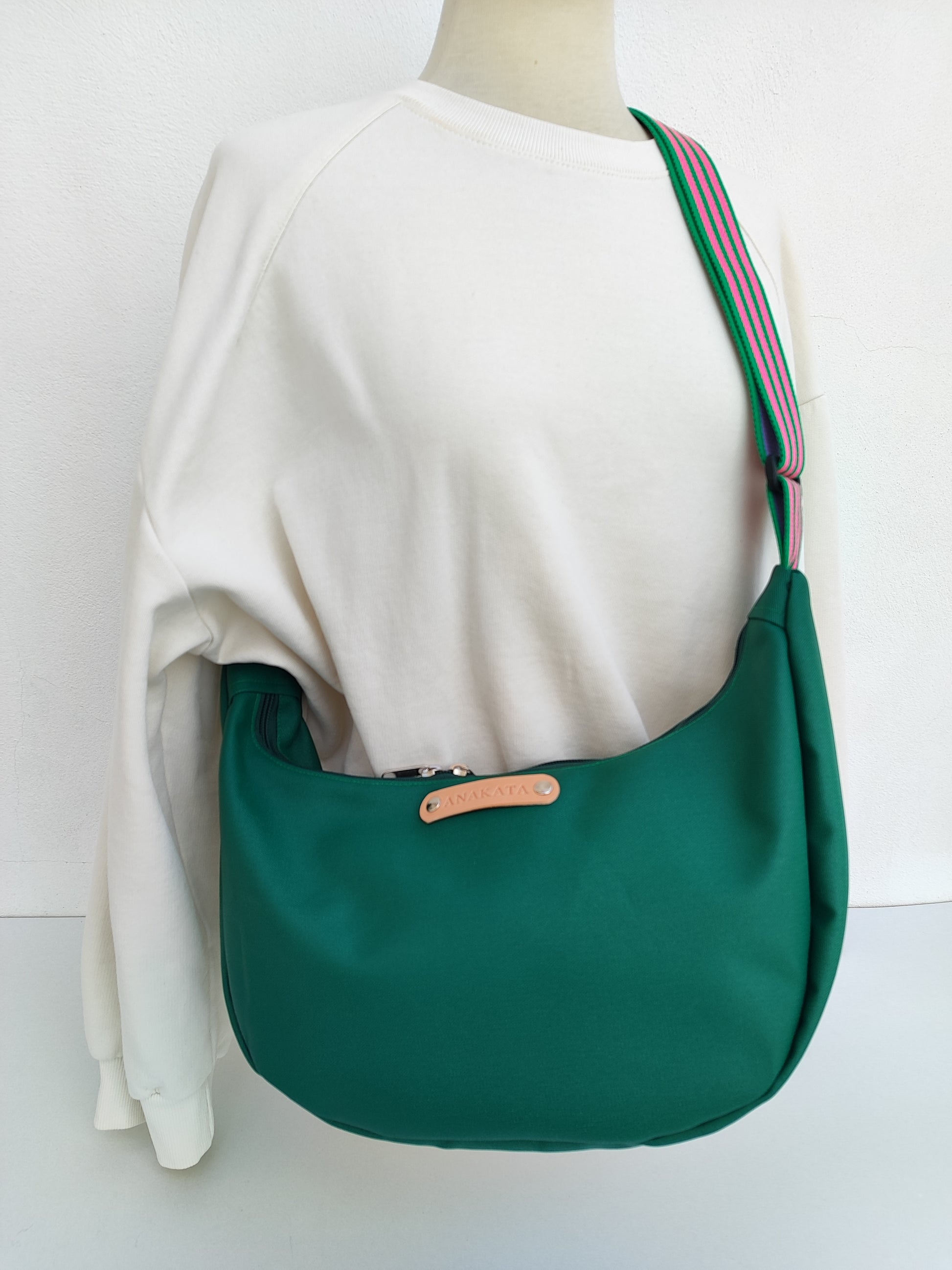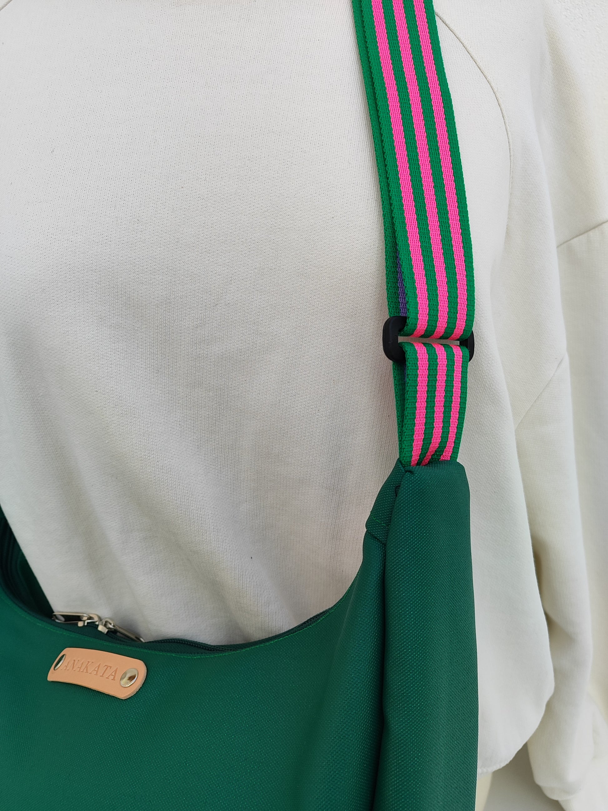 Τσάντα ''κρουασάν'' - κυπαρισσί με ριγέ ιμάντα.