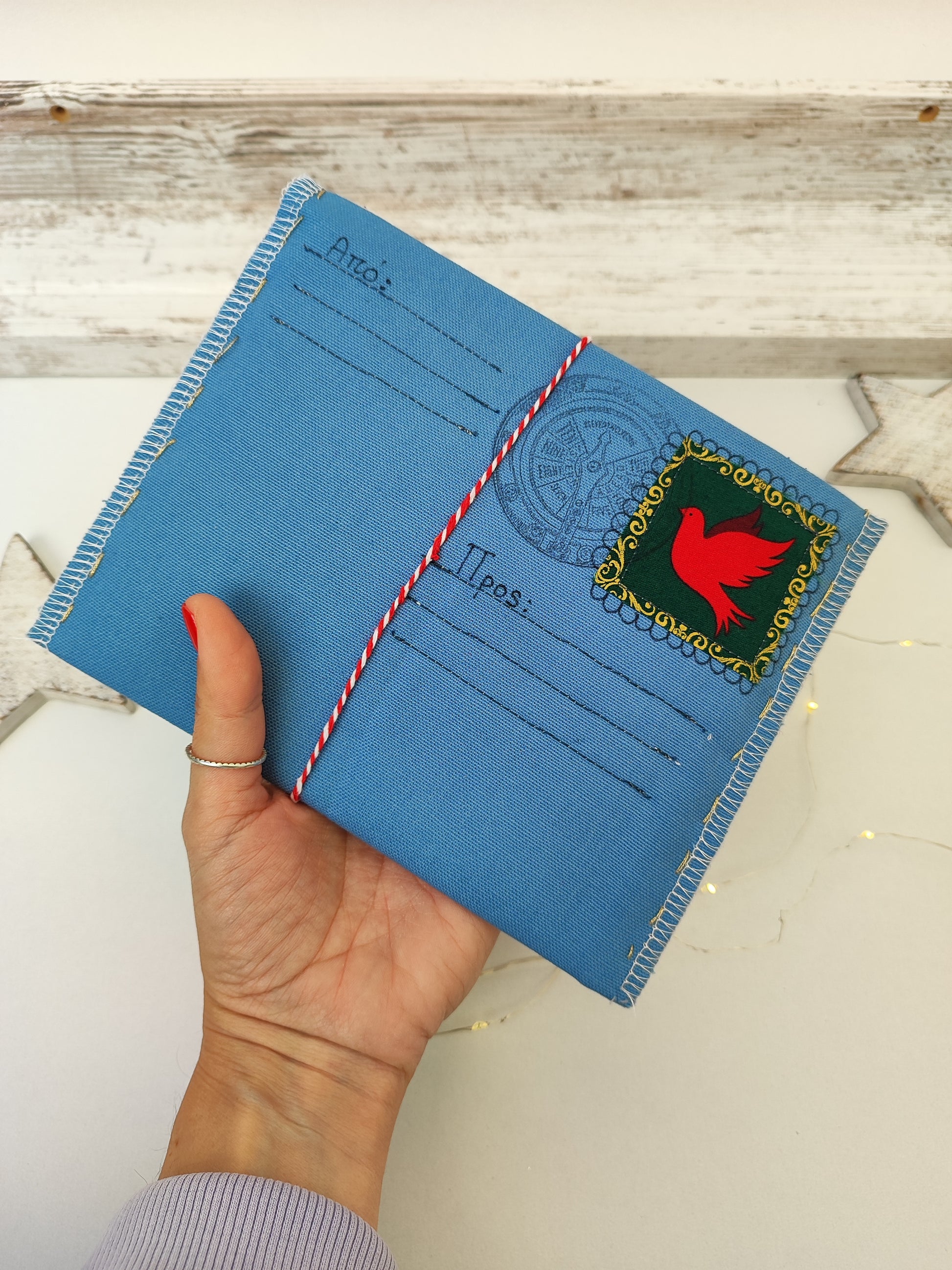 Υφασμάτινος φάκελος για το γράμμα στον Άγιο Βασίλη - γαλάζιο με χρυσές λεπτομέρειες.