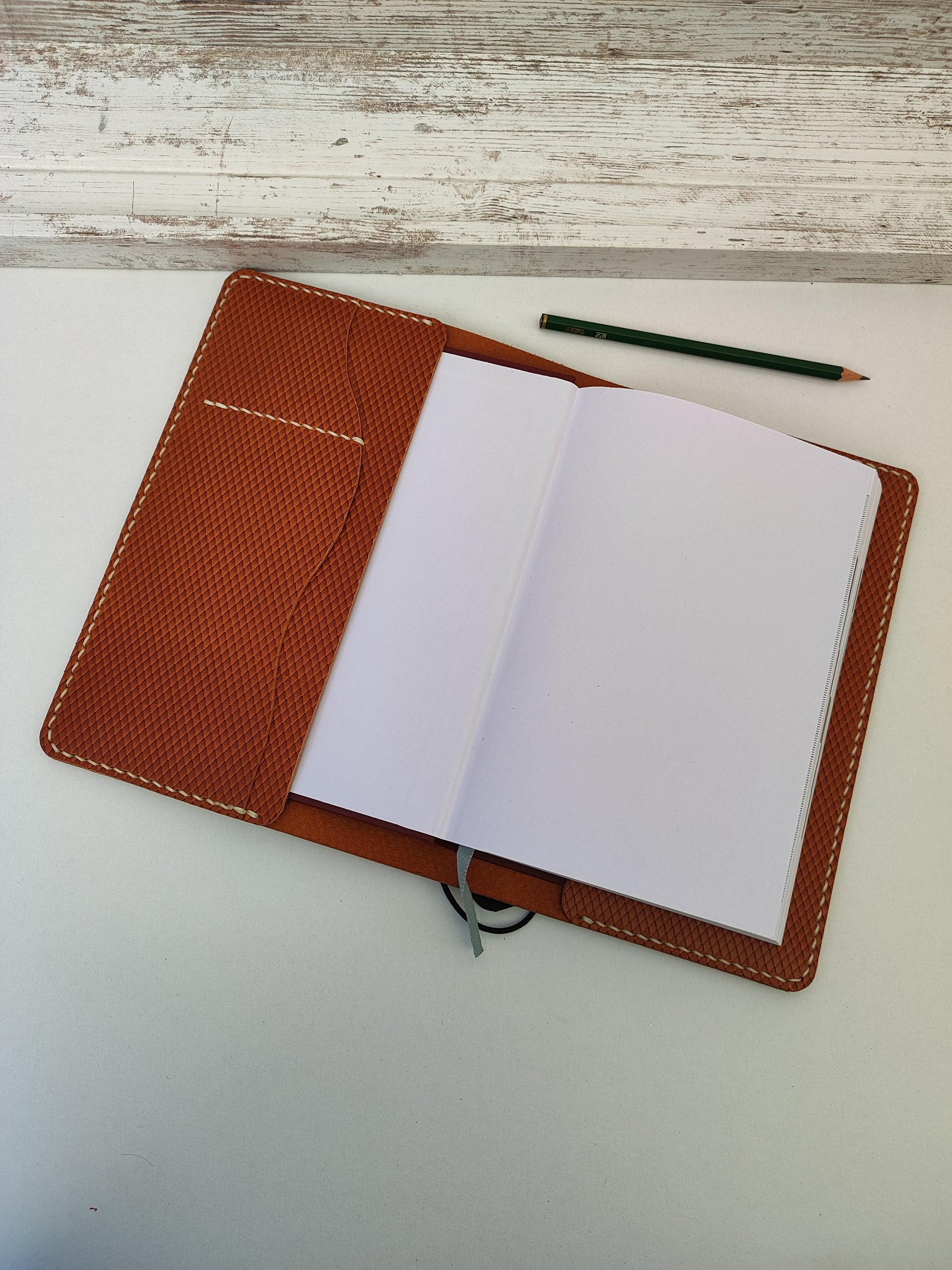 Κάλυμμα για ημερολόγιο - σημειωματάριο με μια θήκη για κάρτες και μια για έγγραφα σε μέγεθος Α5.