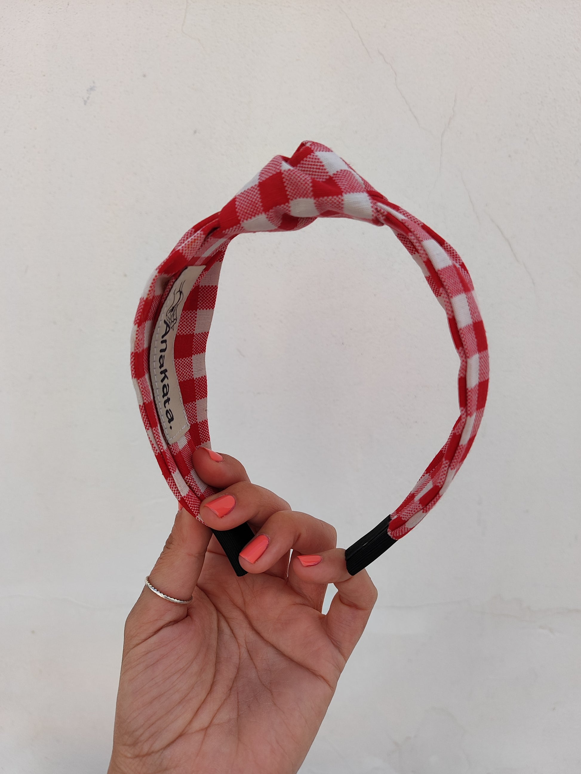 Χειροποίητη στέκα μαλλιών ''κόκκινο καρό''