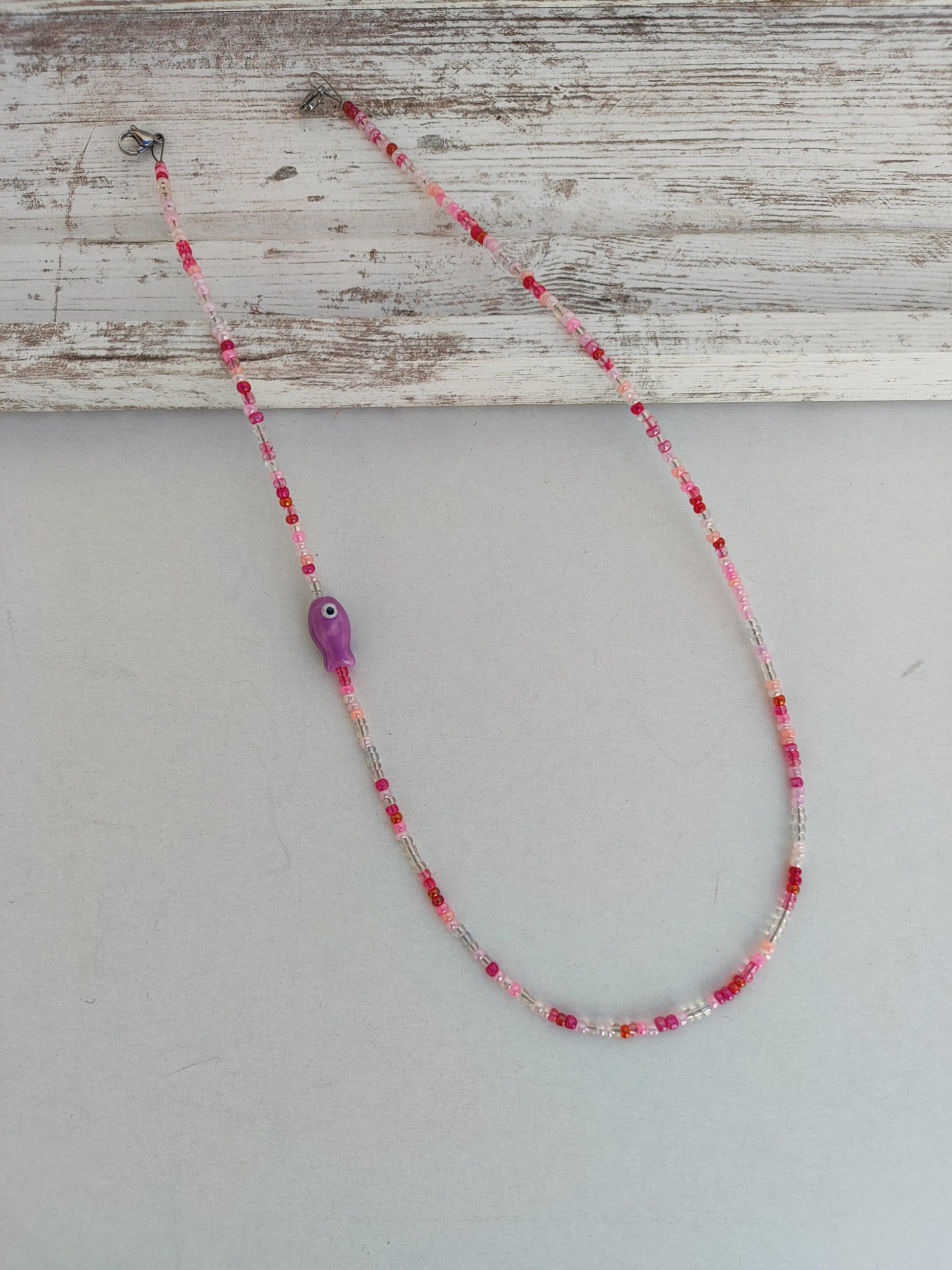 Χειροποίητο αλυσιδάκι για το καπέλο σου - αποχρώσεις του ροζ, με ψαράκι