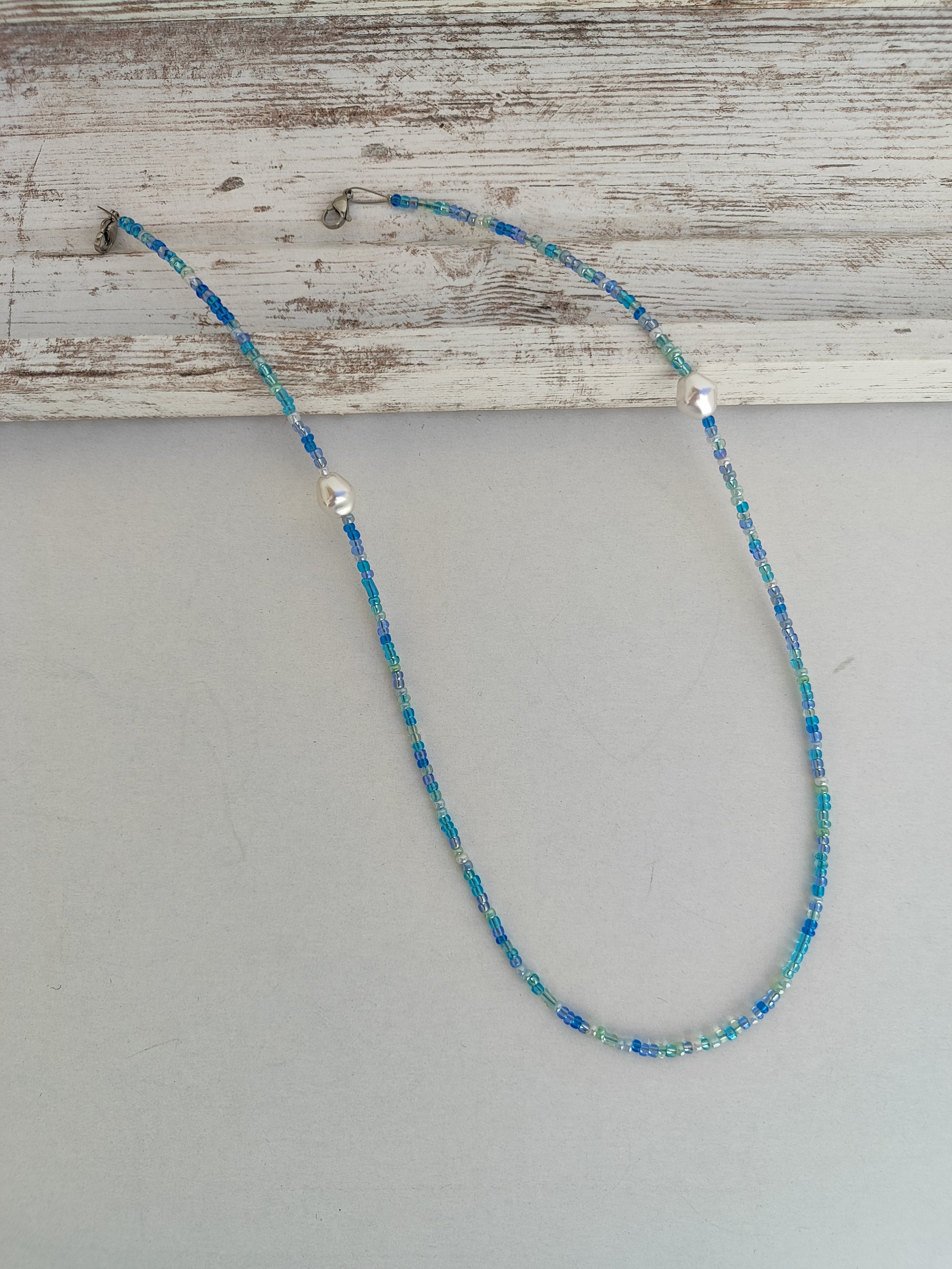 Χειροποίητο αλυσιδάκι για το καπέλο σου - διάφανες θαλασσιές χάντρες με πέρλες