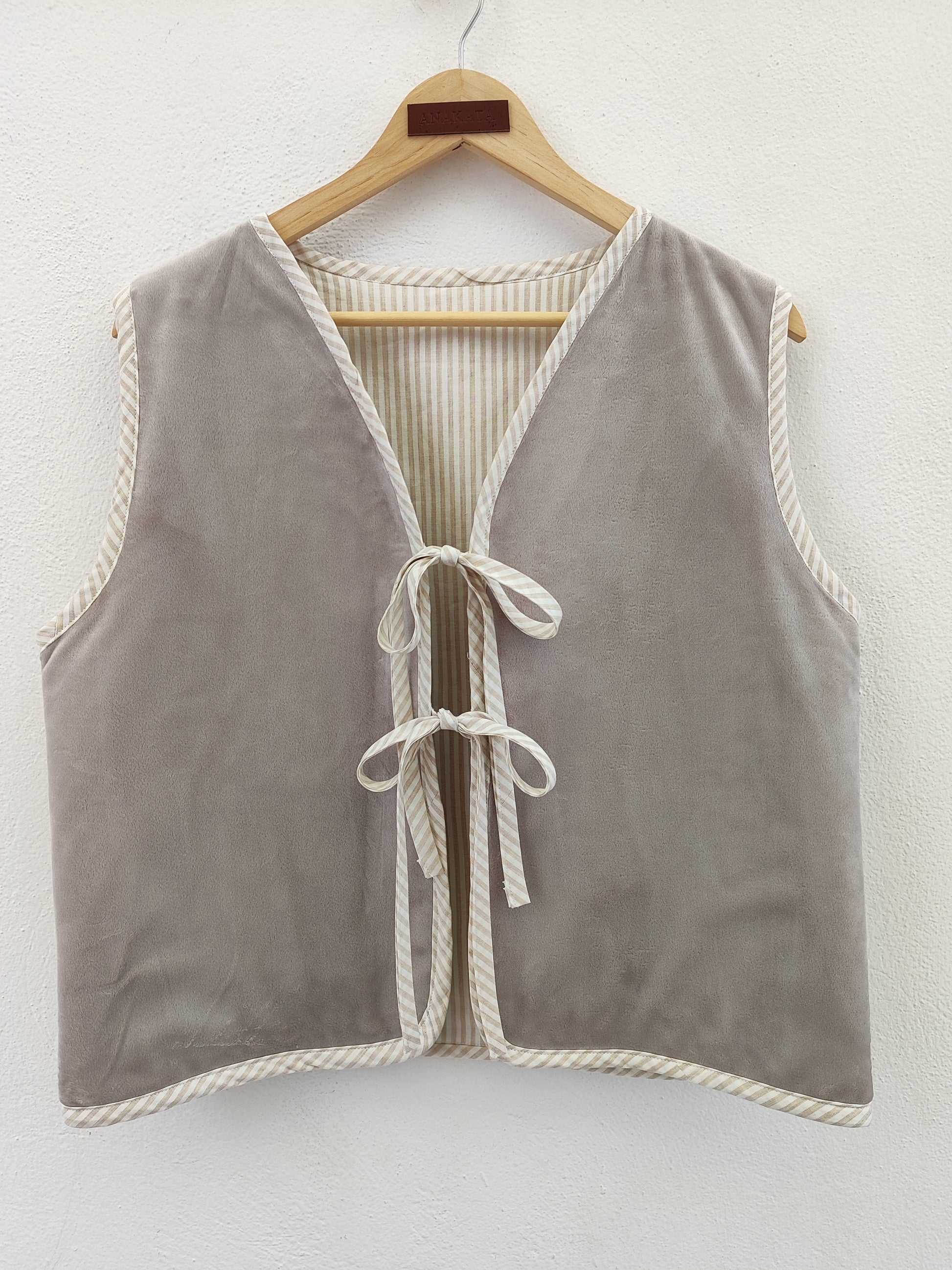 Χειροποίητο γιλέκο, μπεζ απαλό βελούδο με ριγέ ρέλι.