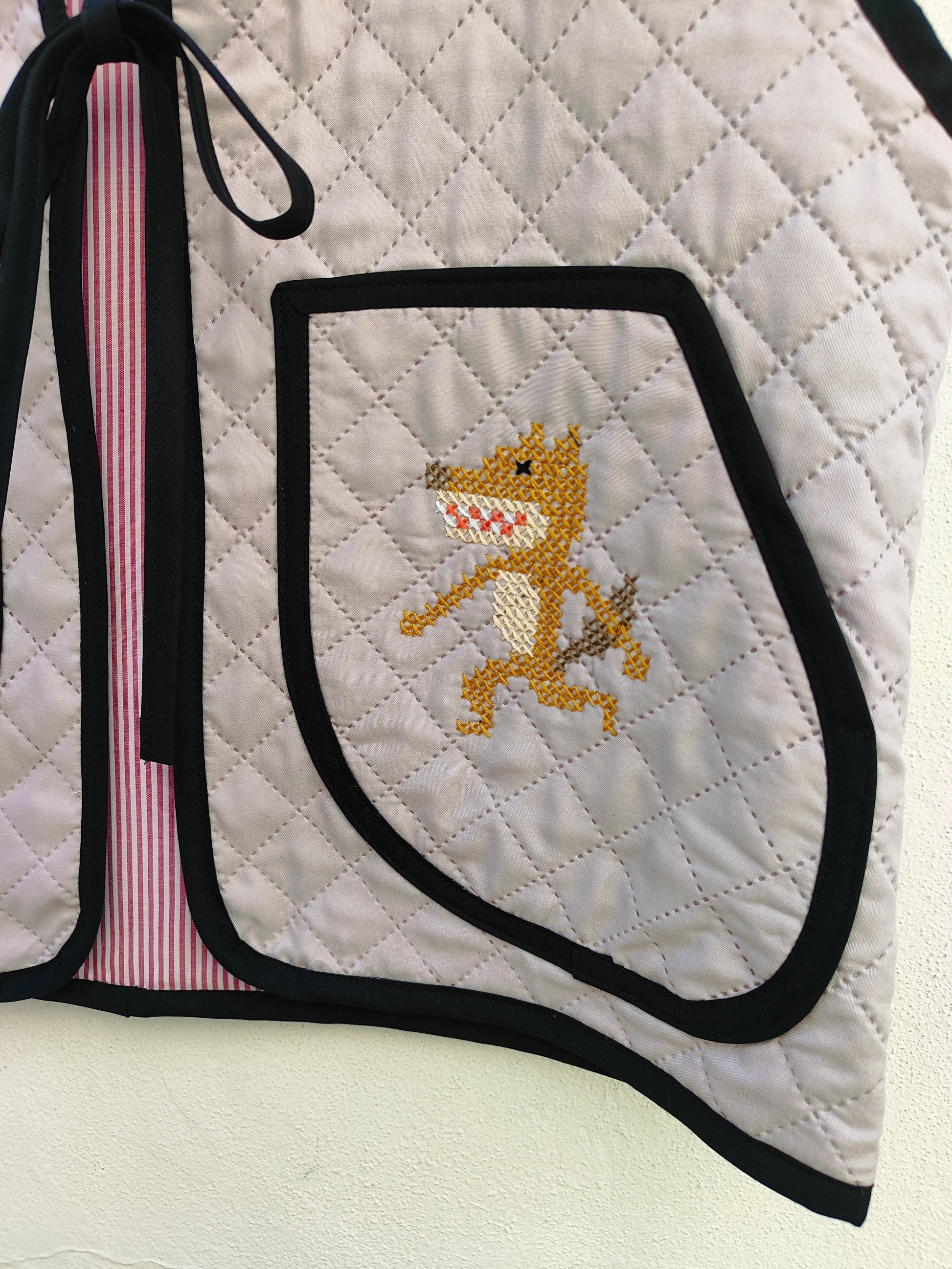 Υλικά: Το εξωτερικό ύφασμα είναι καπιτονέ microfiber, η φόδρα από βαμβακερή ποπλίνα και τα ρέλια βαμβακερά.