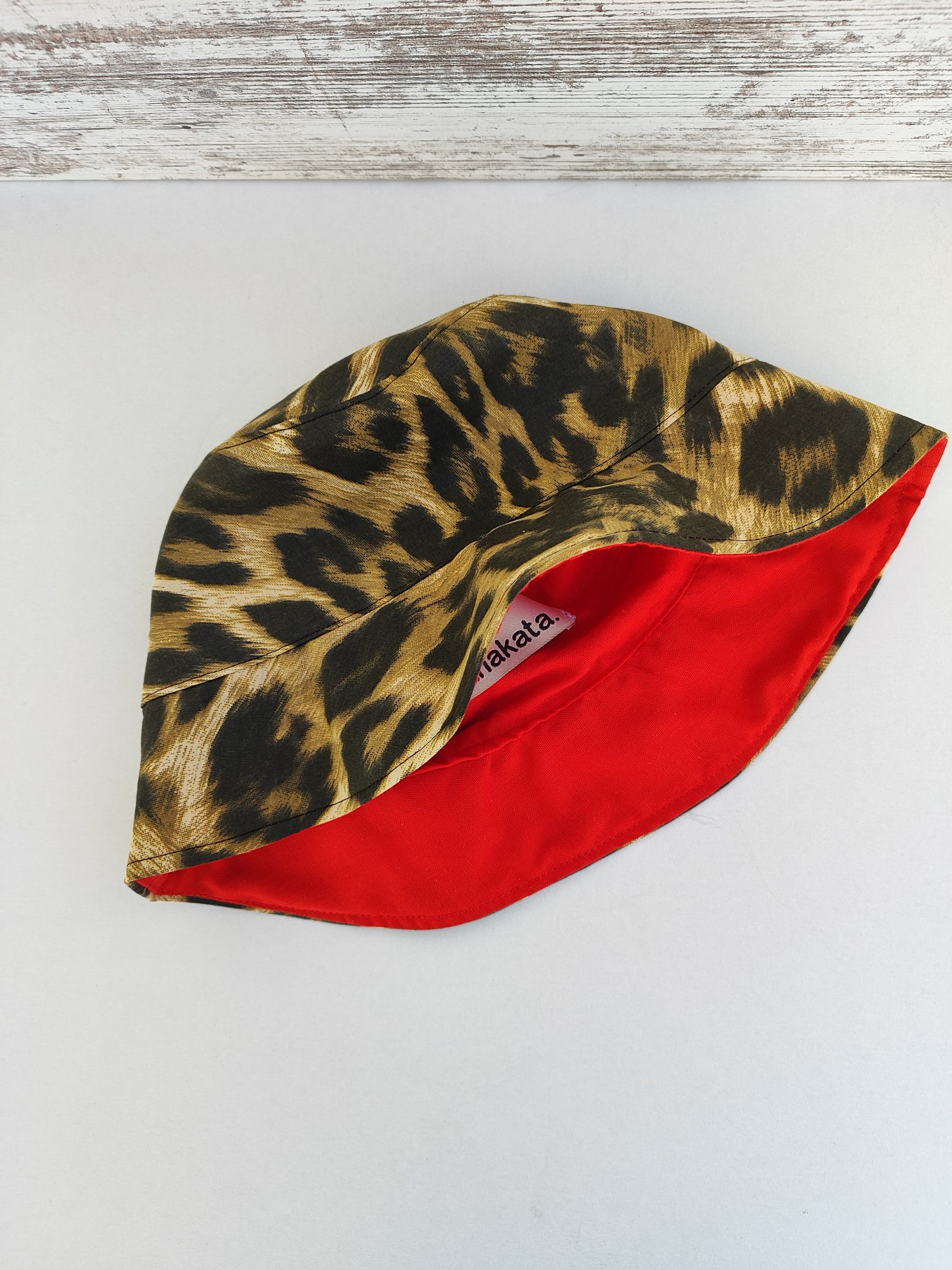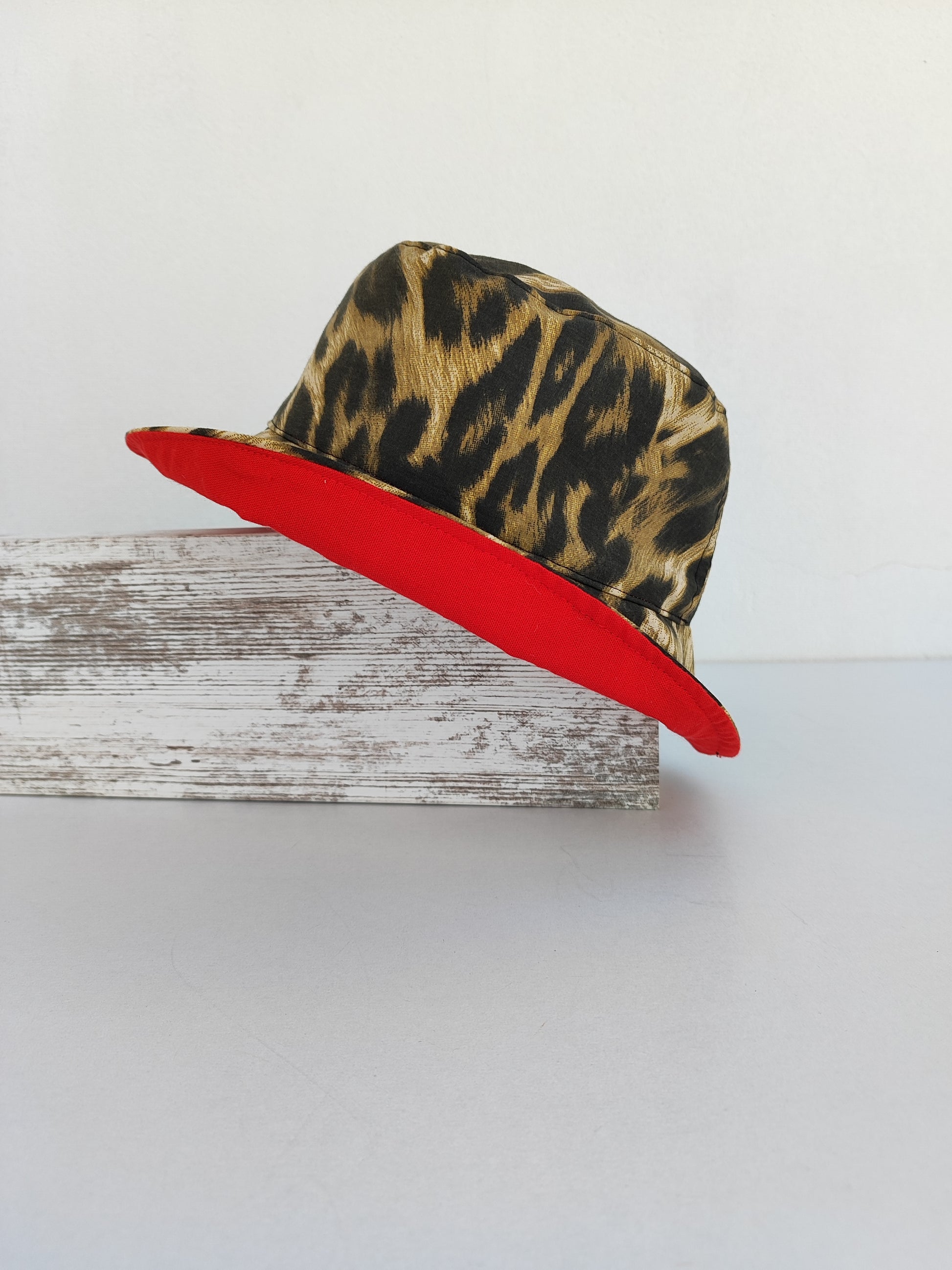 Χειροποίητο καπέλο διπλής όψης ''λεοπάρ - κόκκινο''