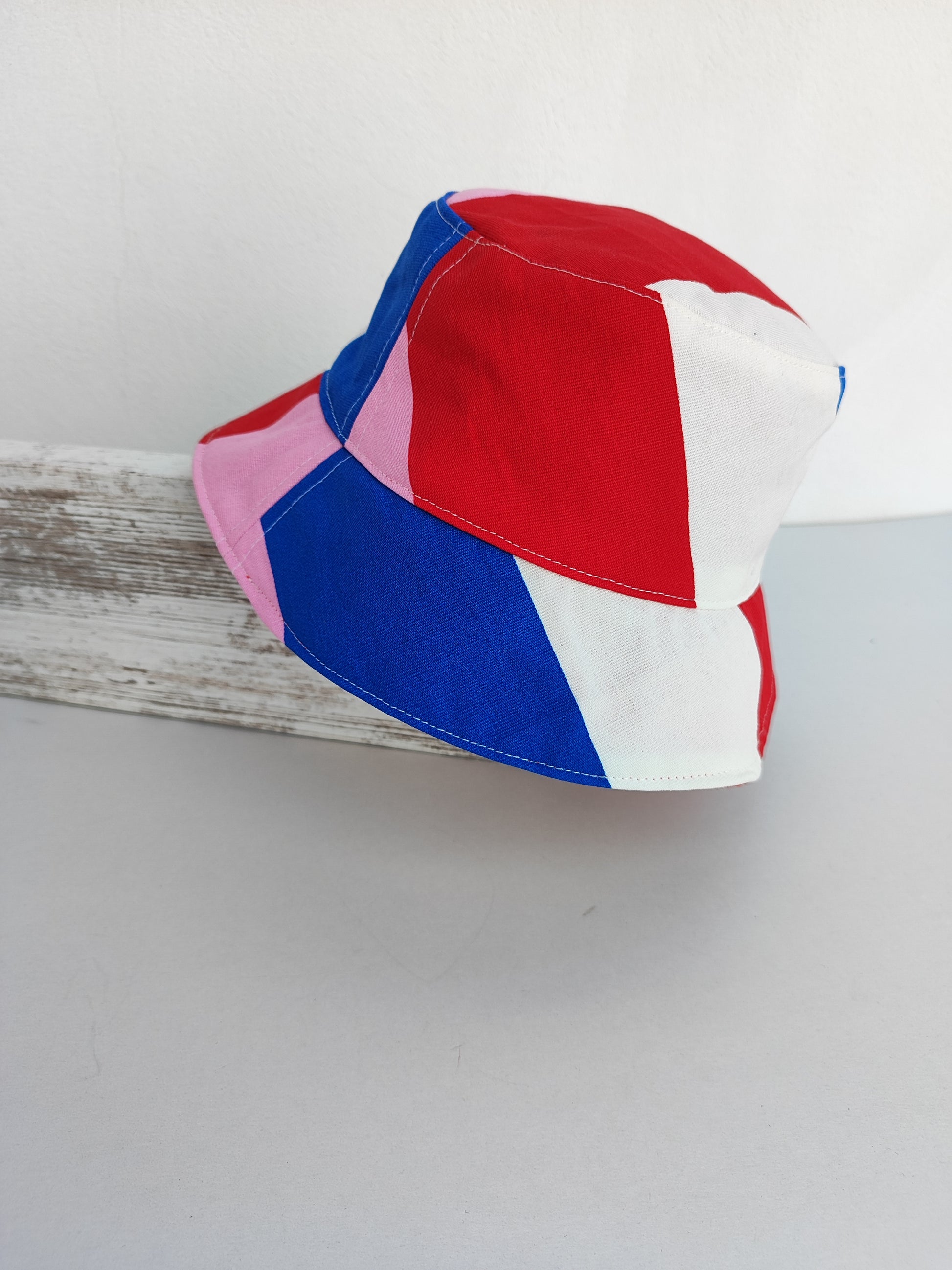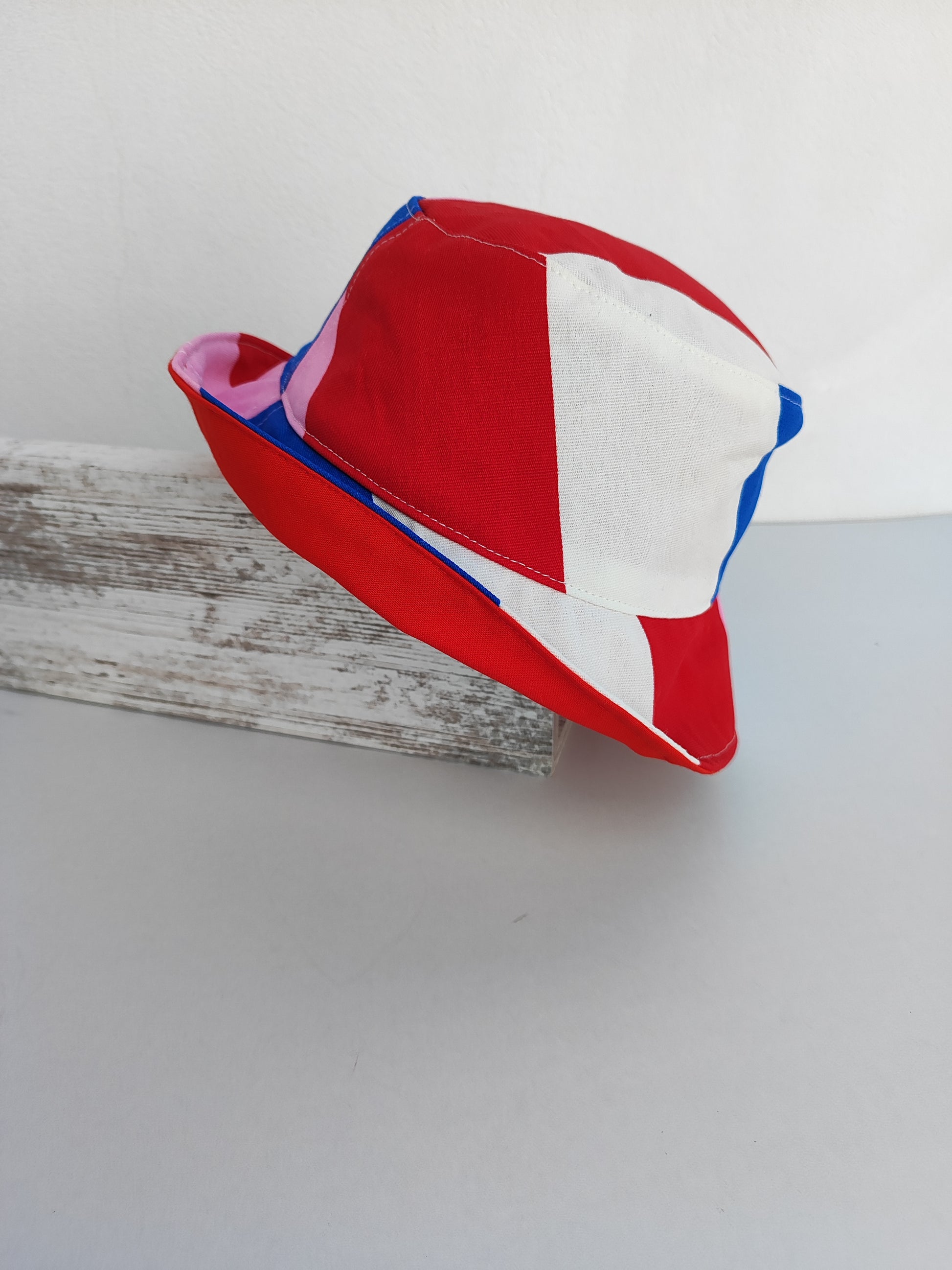 Χειροποίητο καπέλο διπλής όψης ''φαρδιές γραμμές - κόκκινο''