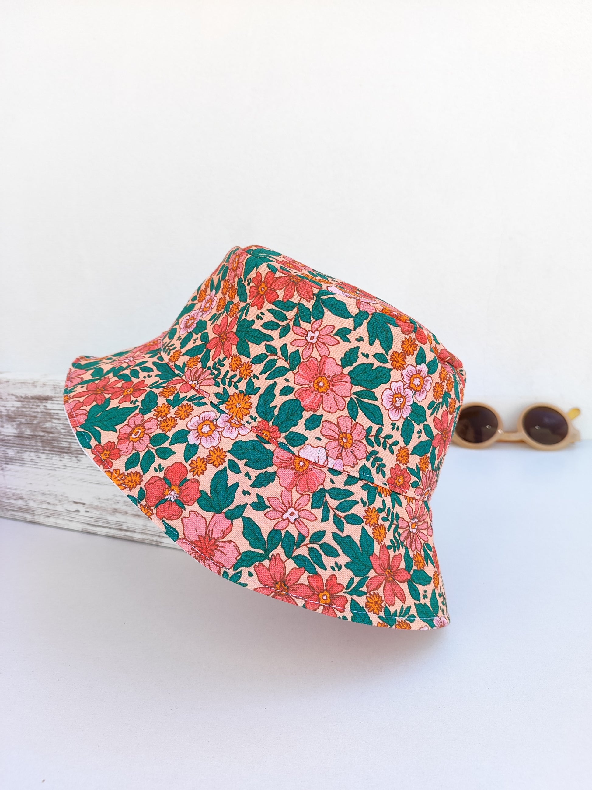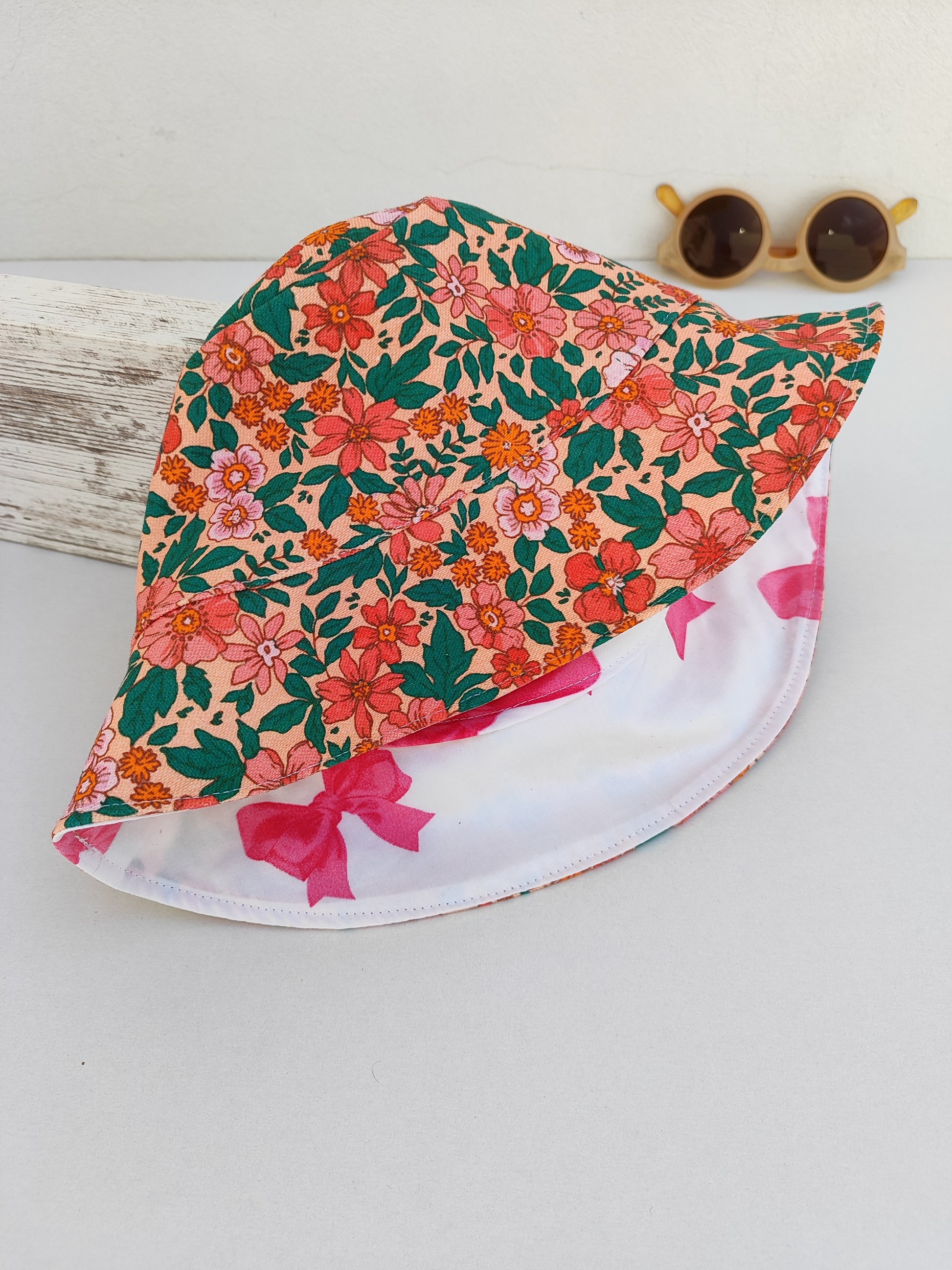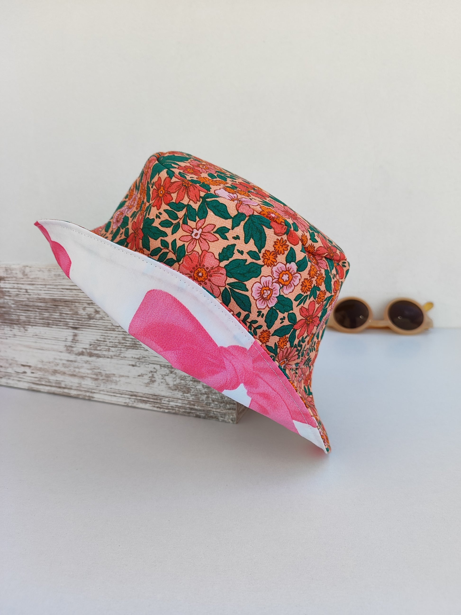 Χειροποίητο καπέλο διπλής όψης ''φλοράλ - λευκό με φιόγκους''