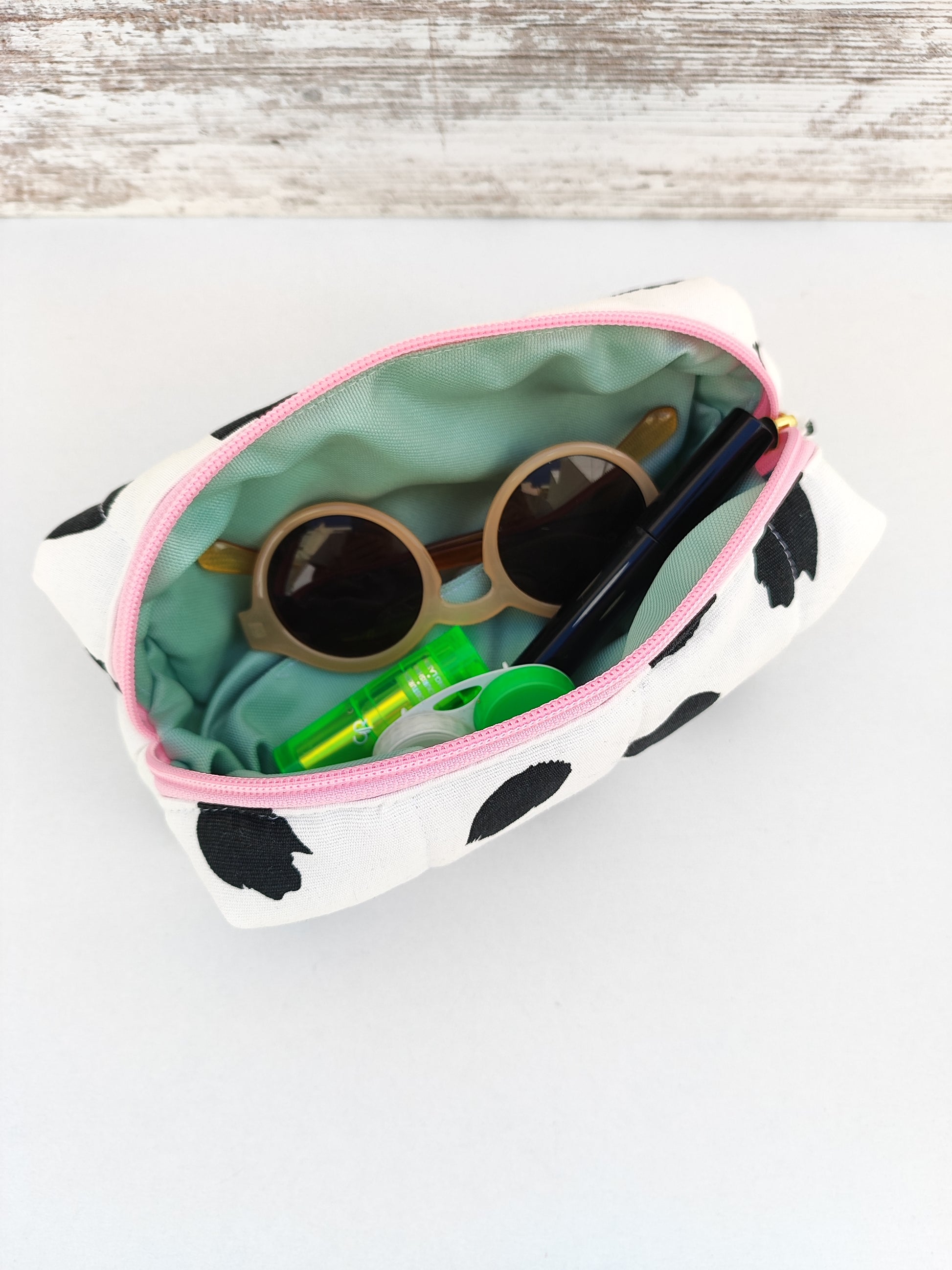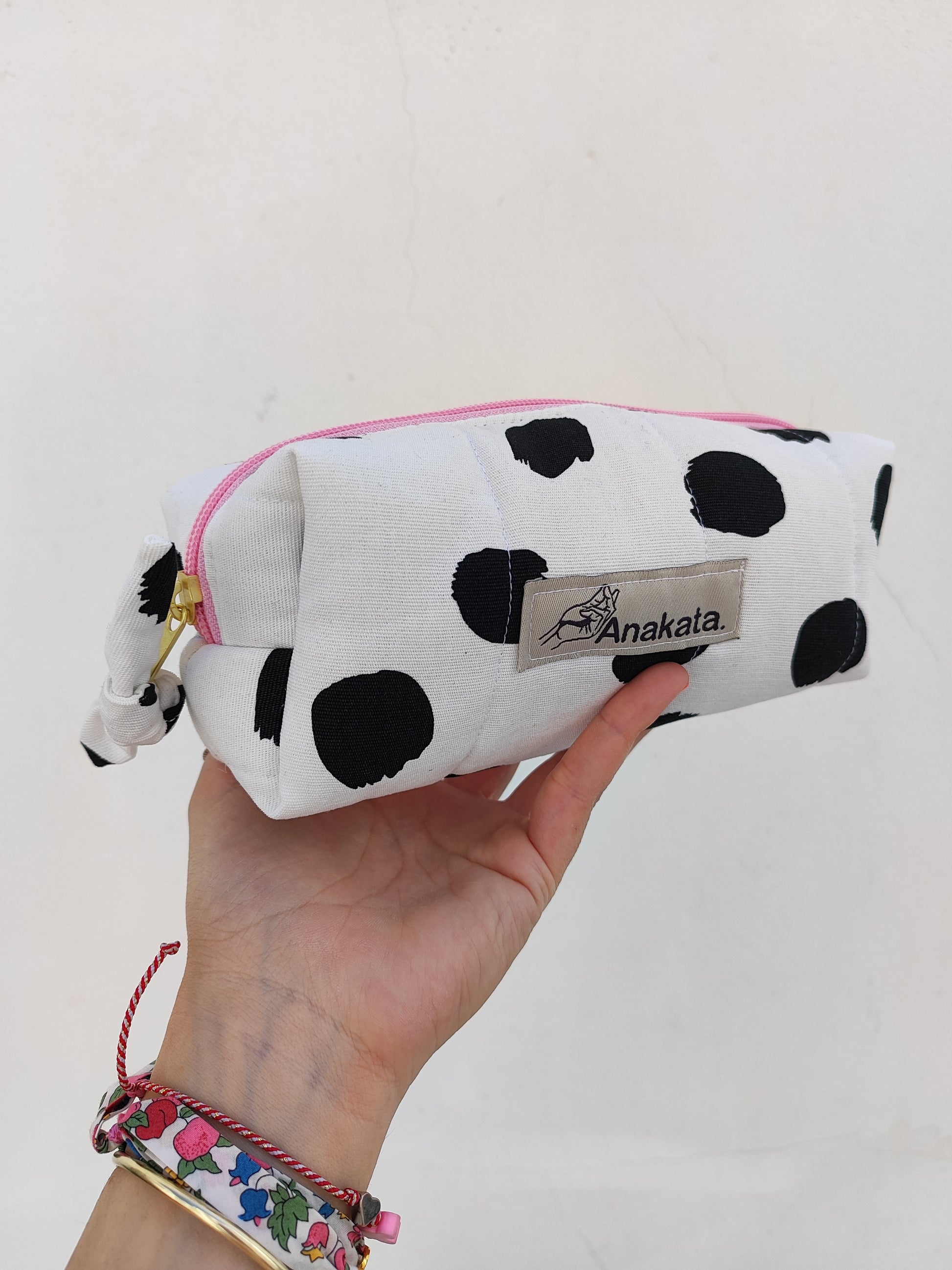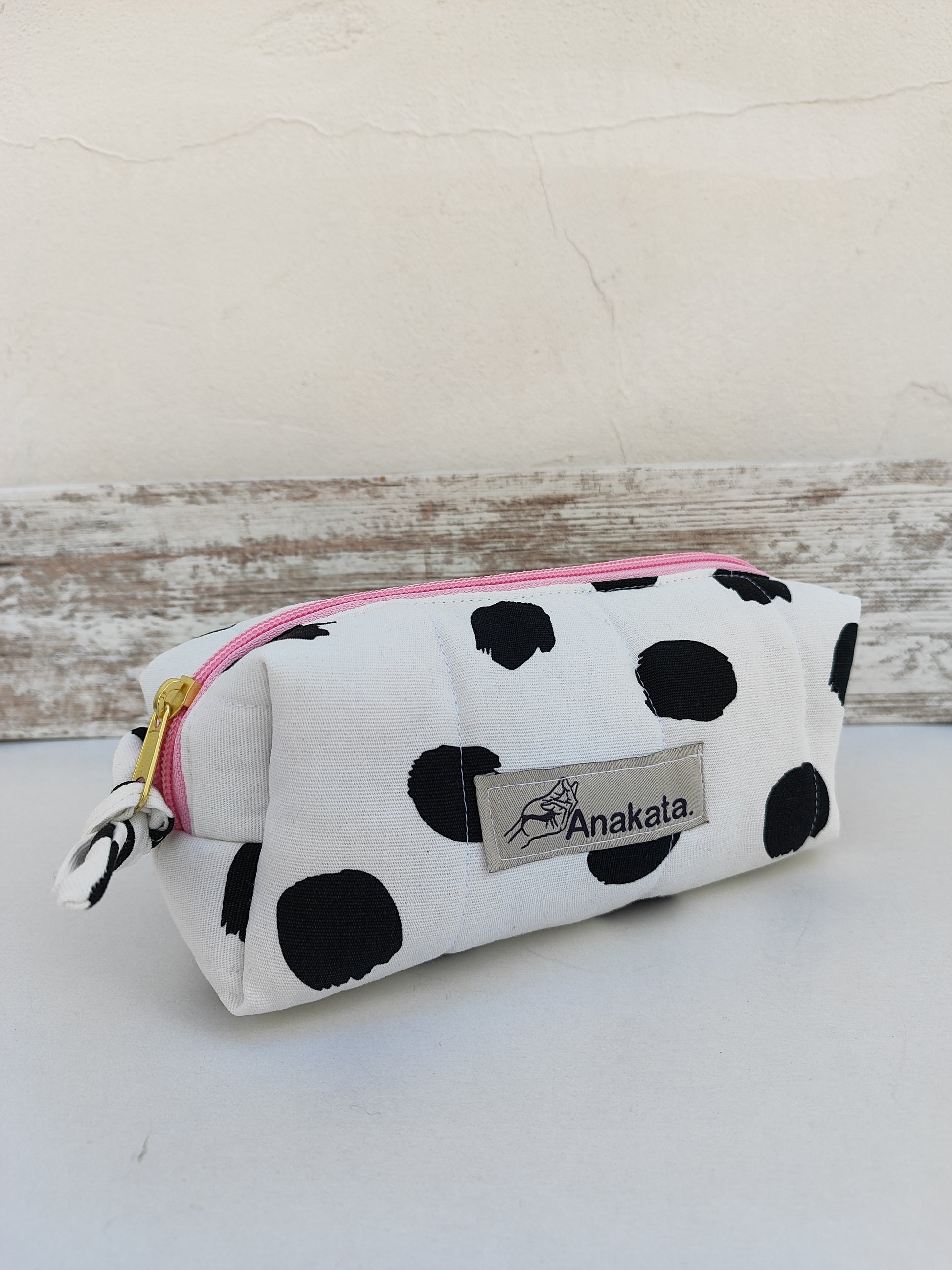 Χειροποίητο νεσεσέρ μπαουλάκι με αδιάβροχη επένδυση ''άσπρο με μαύρες πιτσίλες''