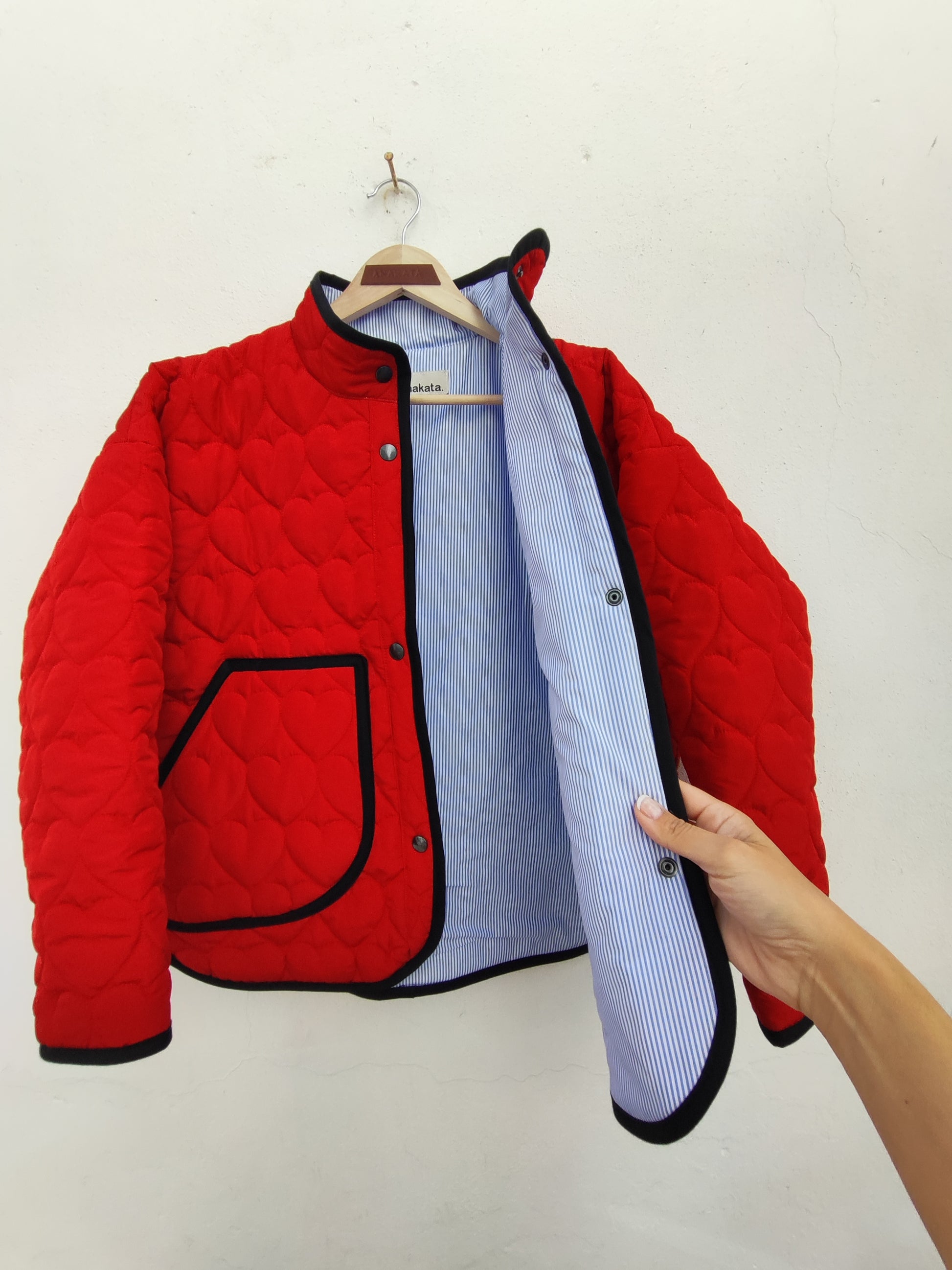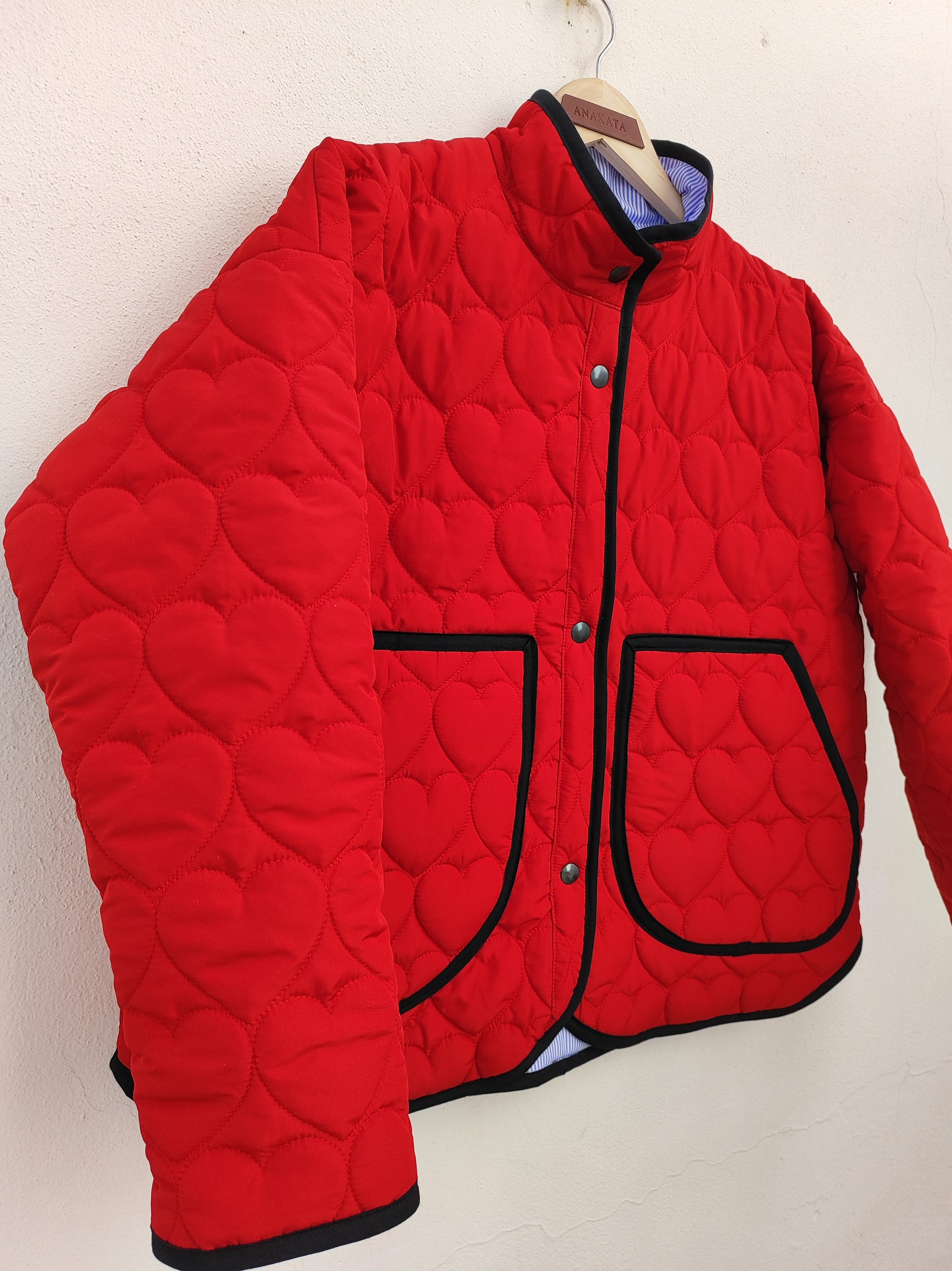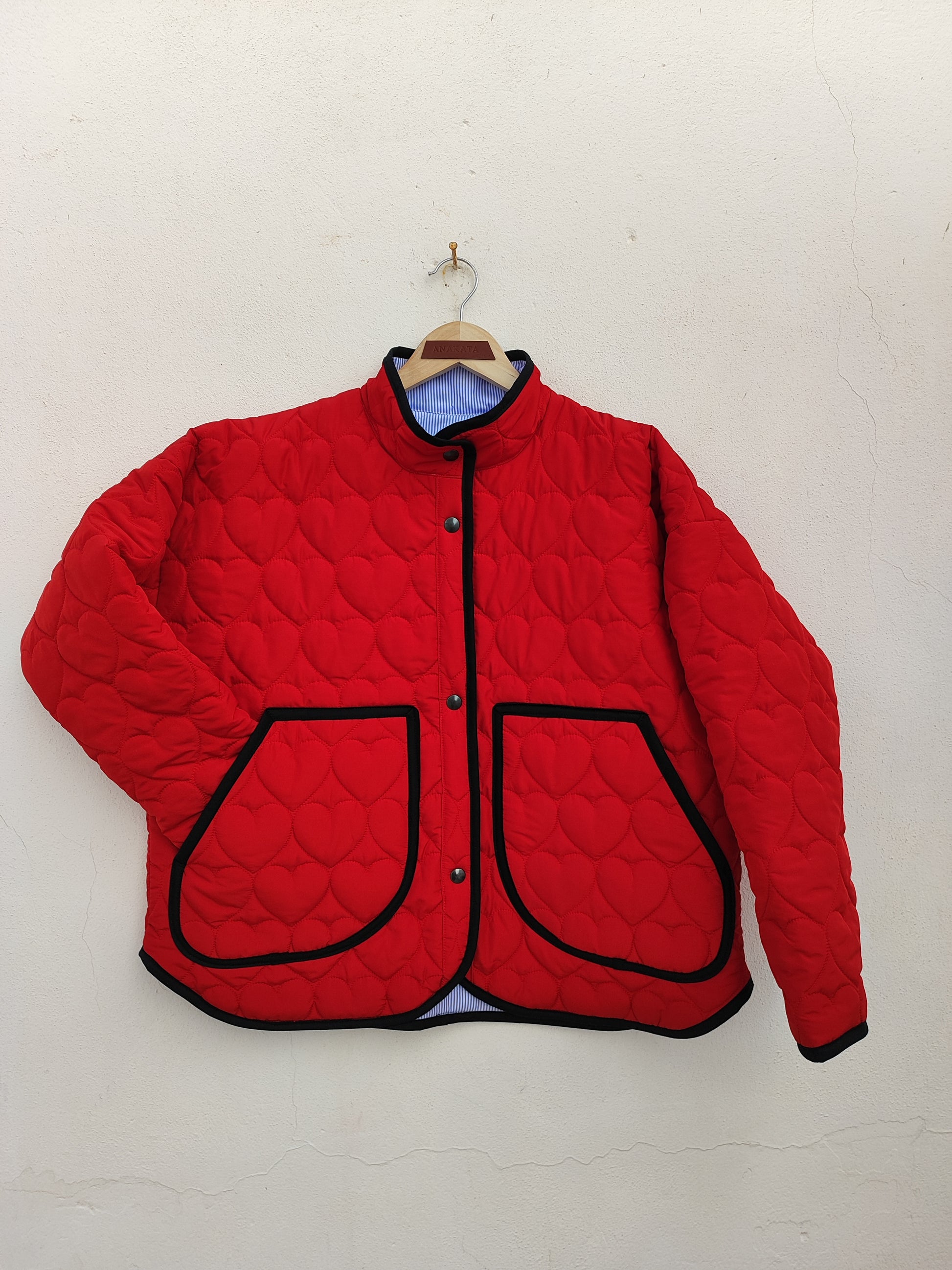 Χειροποίητο τζάκετ - κόκκινο, καπιτονέ με καρδιές