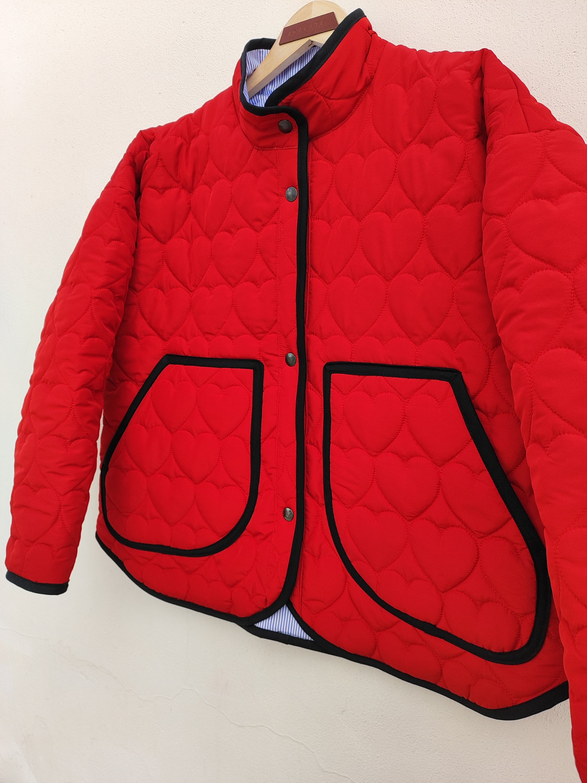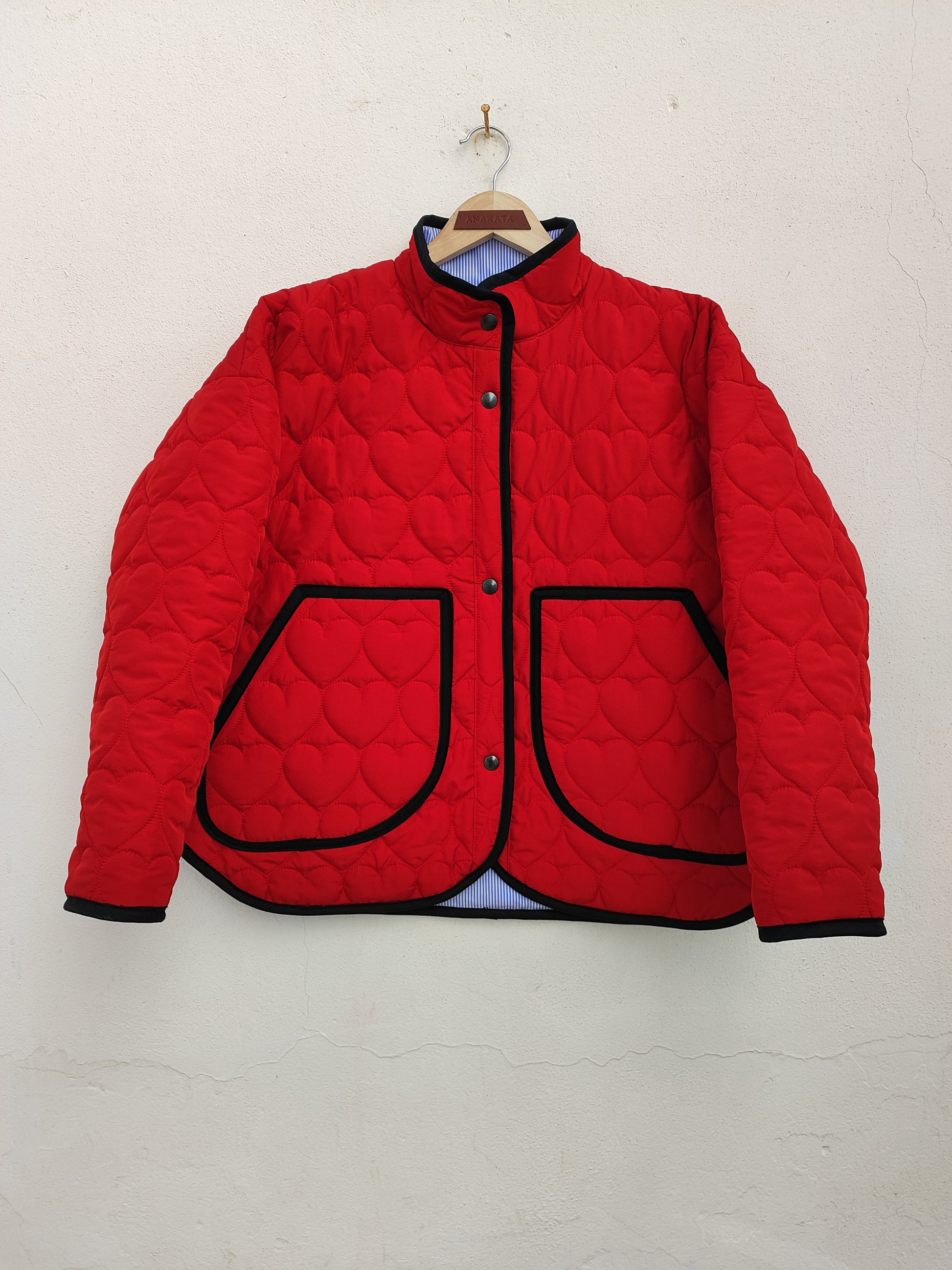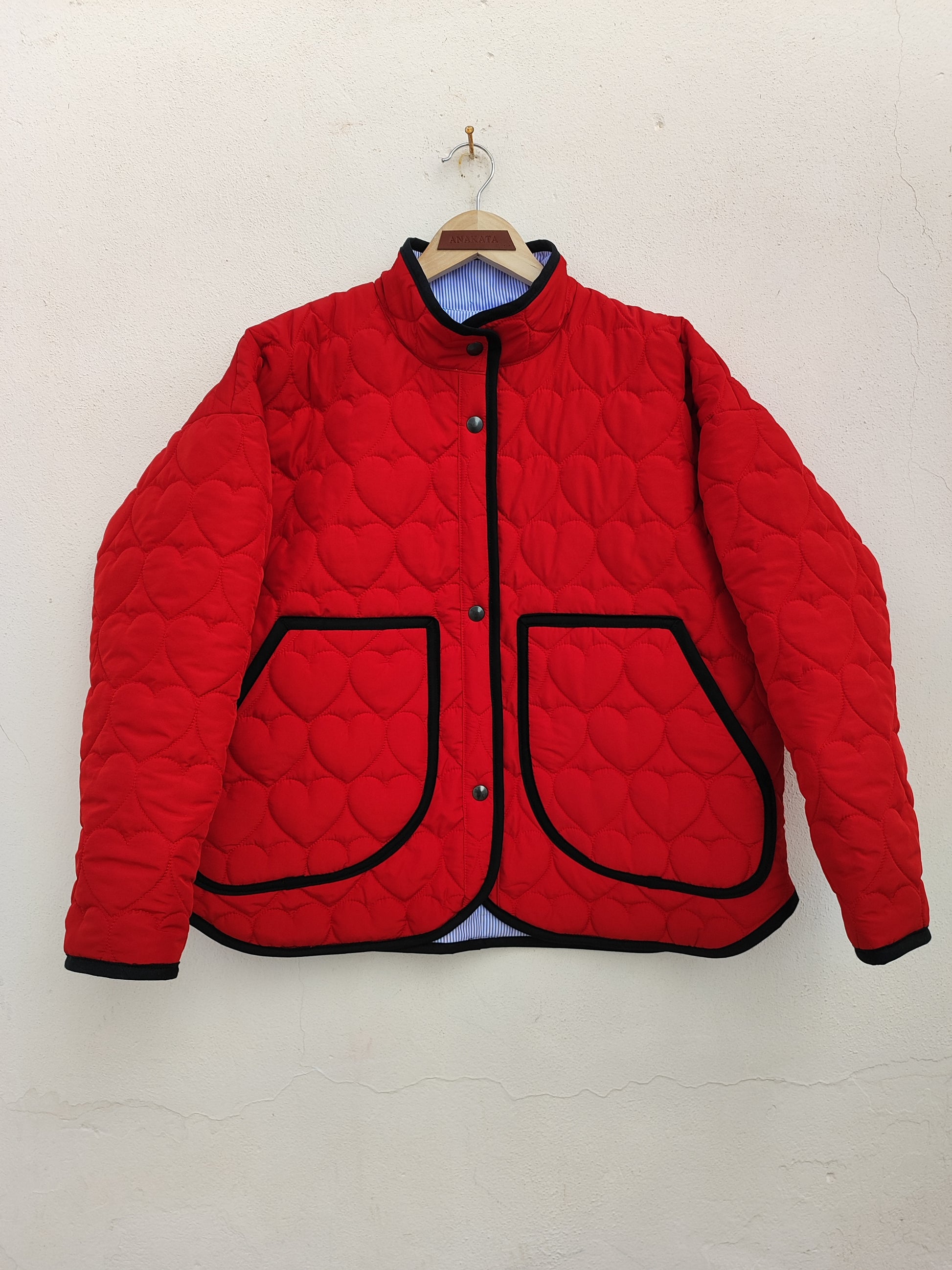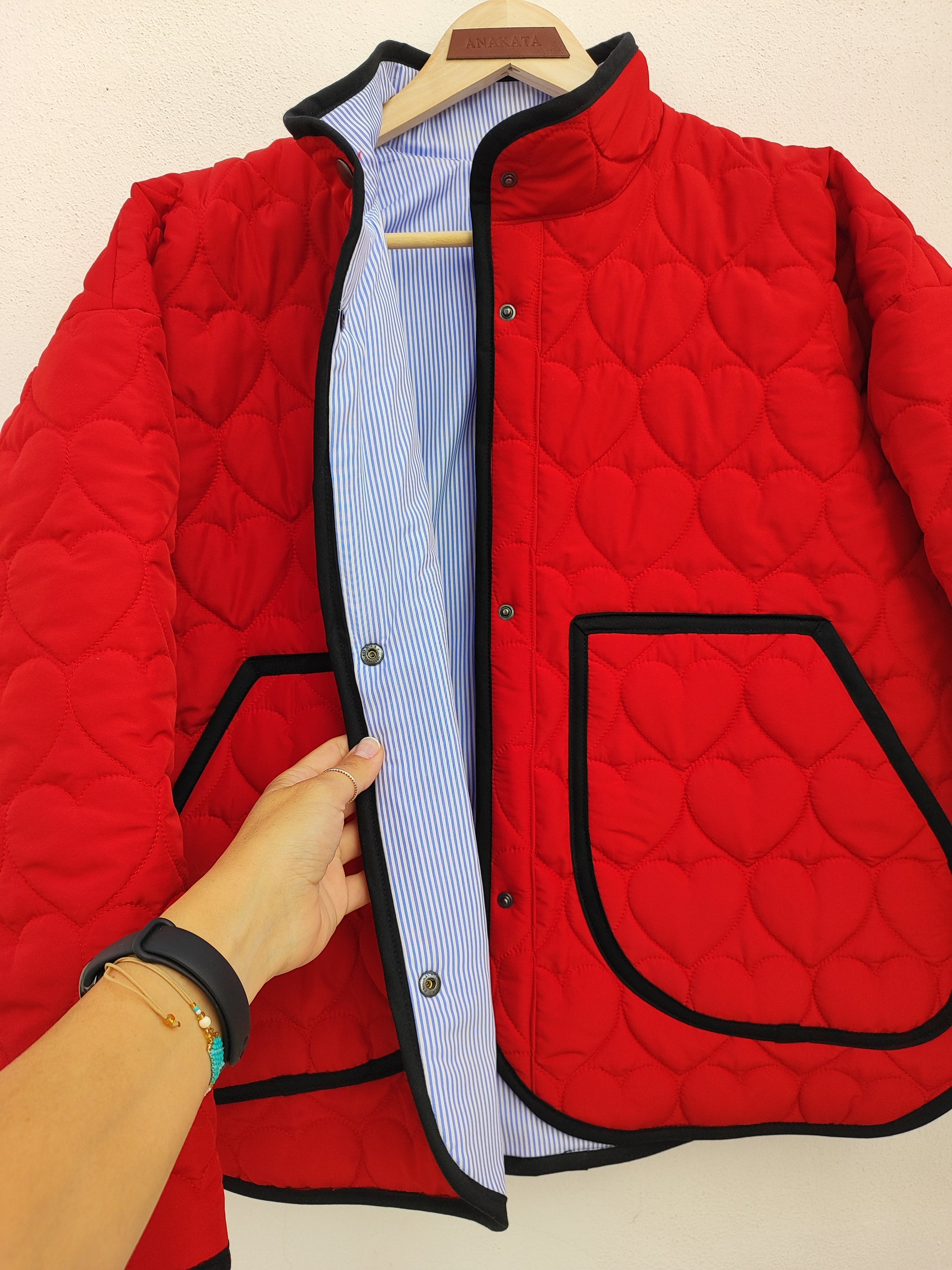 Χειροποίητο τζάκετ - κόκκινο, καπιτονέ με καρδιές