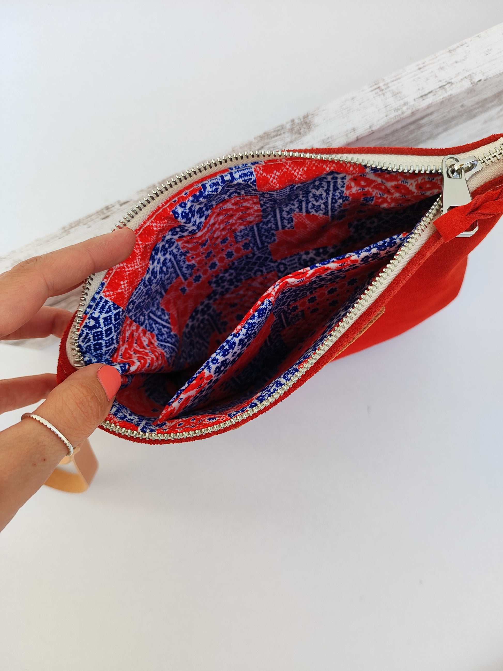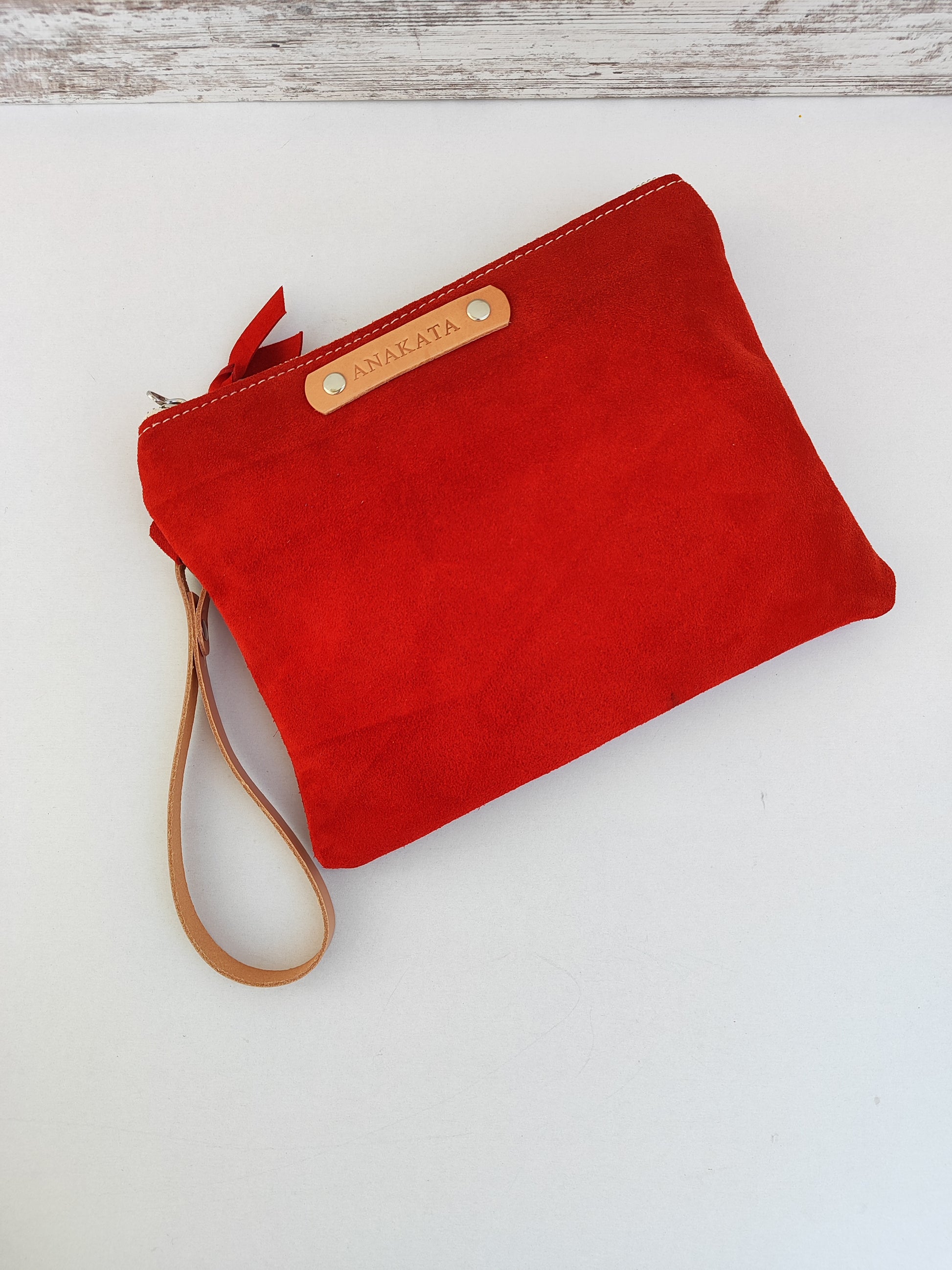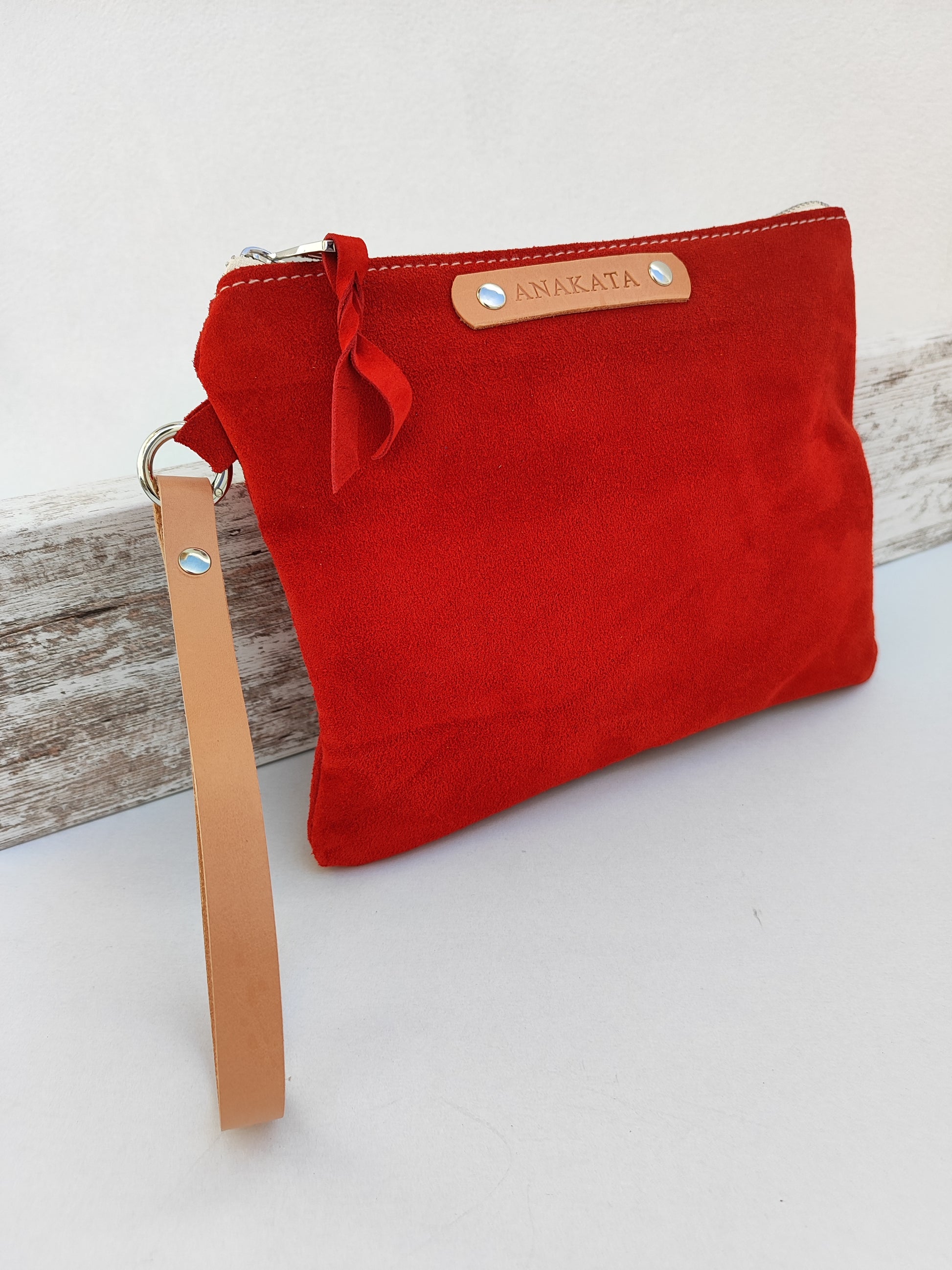 Χειροποίητο suede τσαντάκι με φερμουάρ - κόκκινο