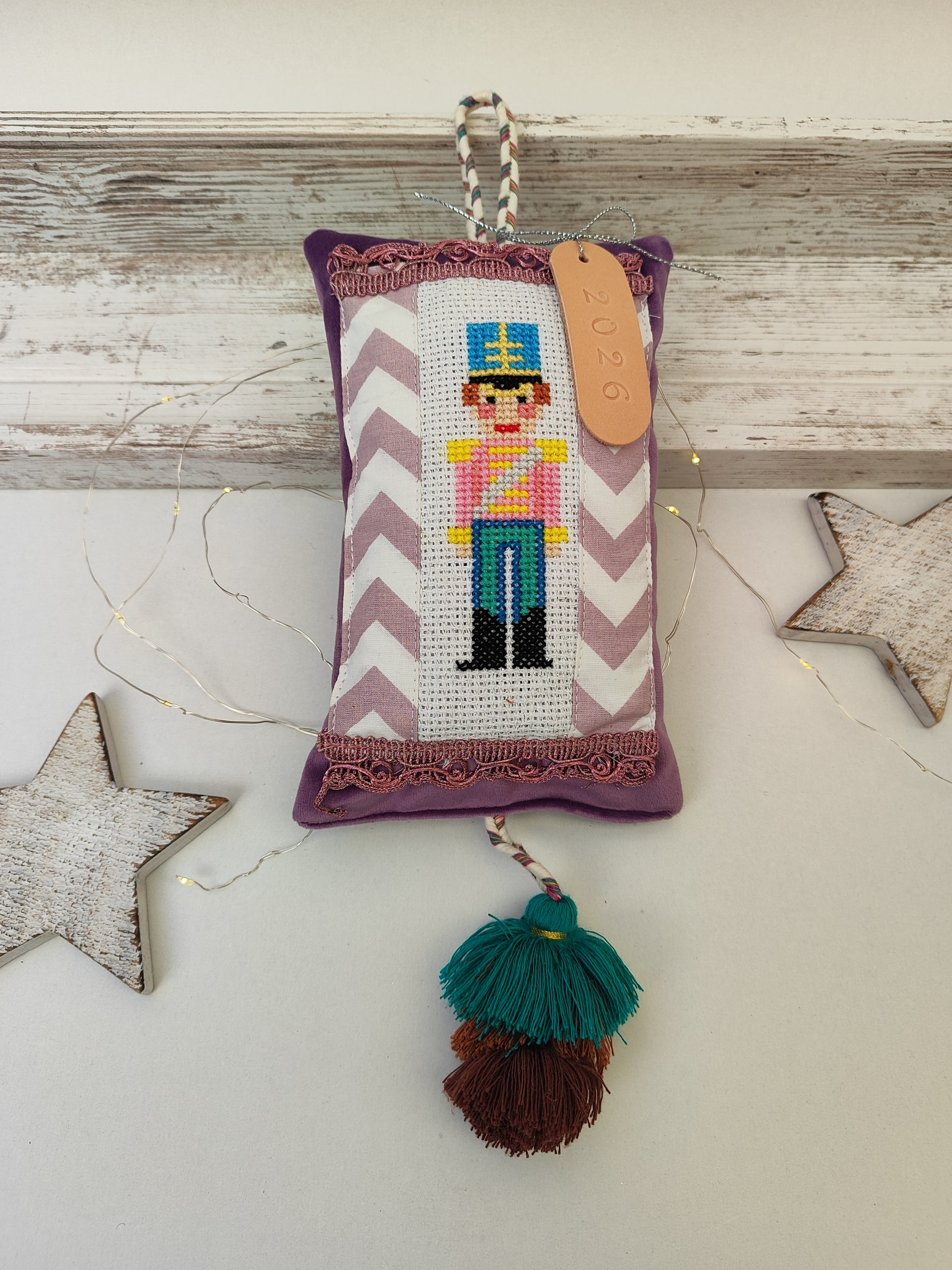 Χριστουγεννιάτικο υφασμάτινο γούρι κεντημένο σταυροβελονιά - καρυοθραύστης.