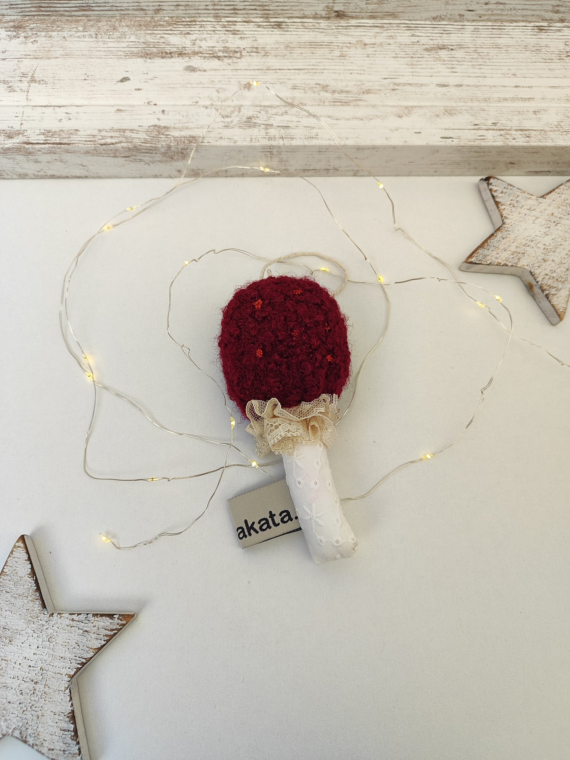 Χριστουγεννιάτικο υφασμάτινο στολίδι - μπορντό μανιτάρι.