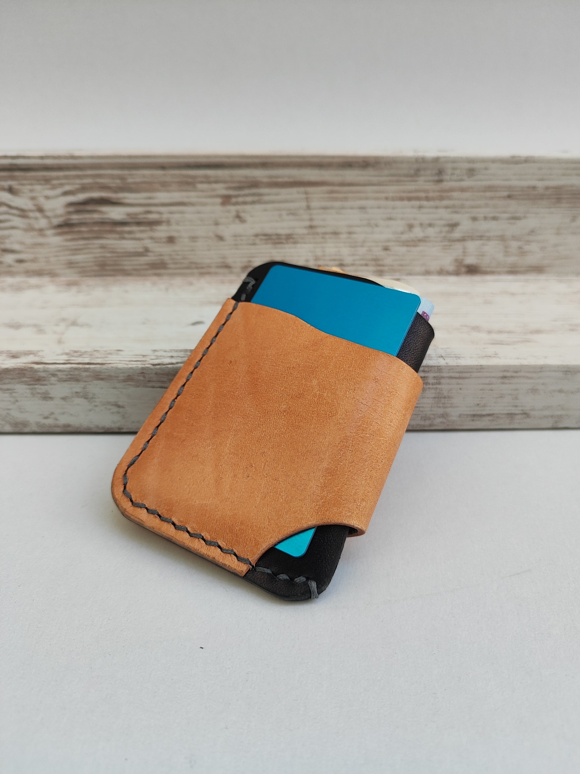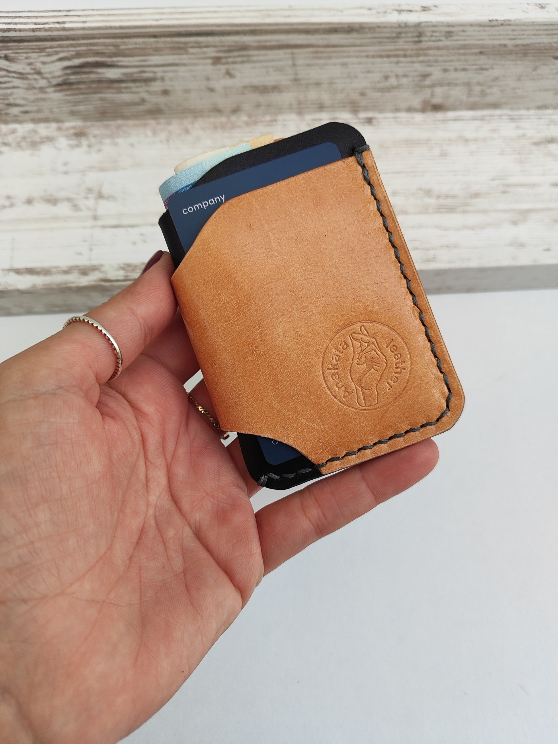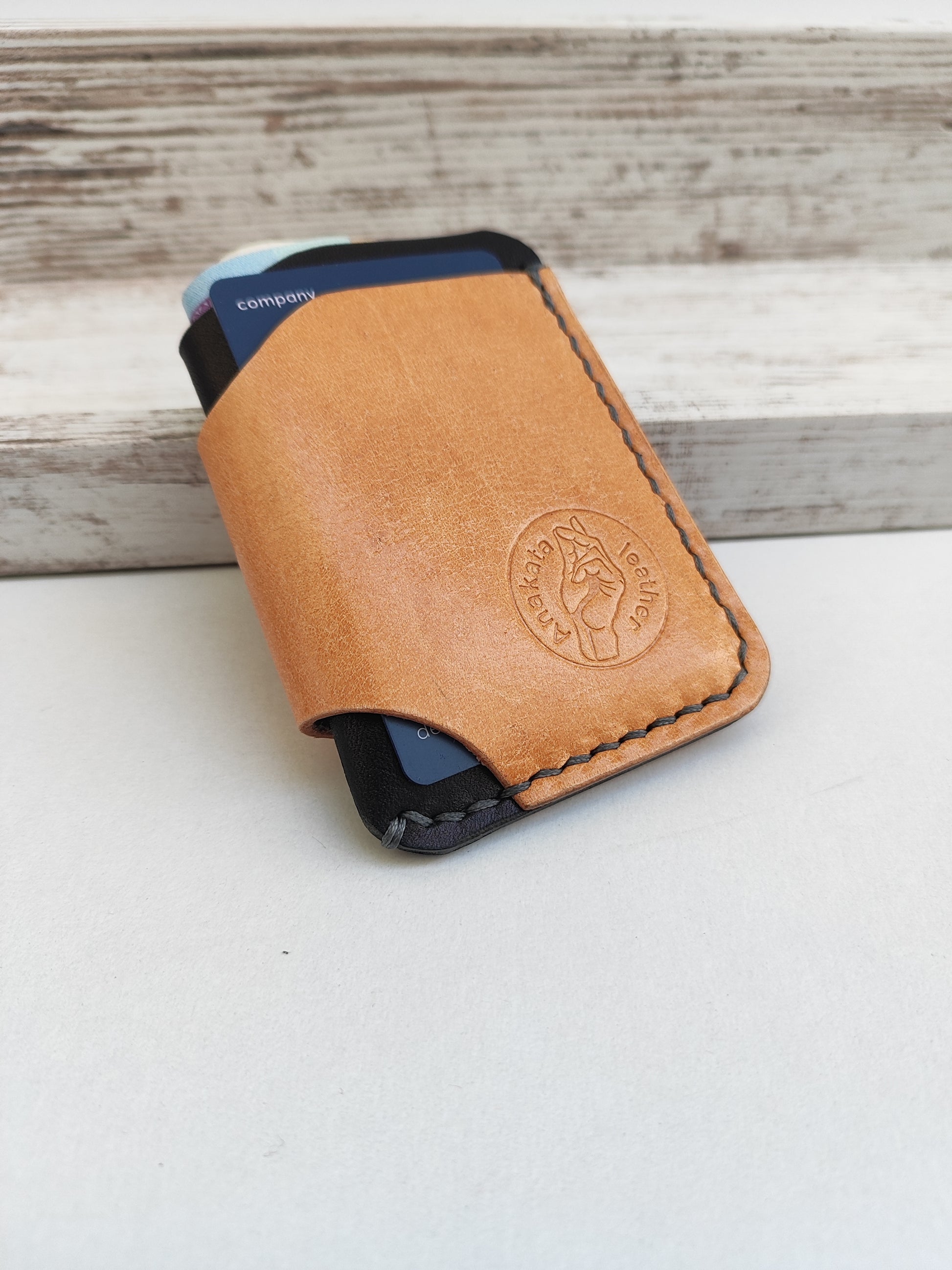 Hobbit δερμάτινο πορτοφόλι ''μαύρο με φυσική βακέτα και γκρι κλωστή''