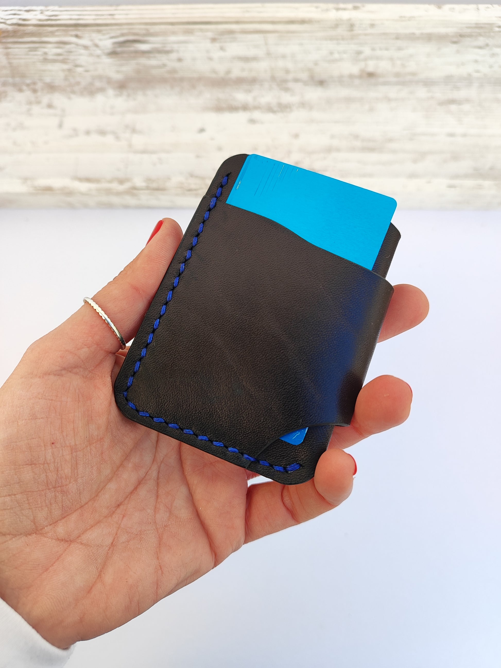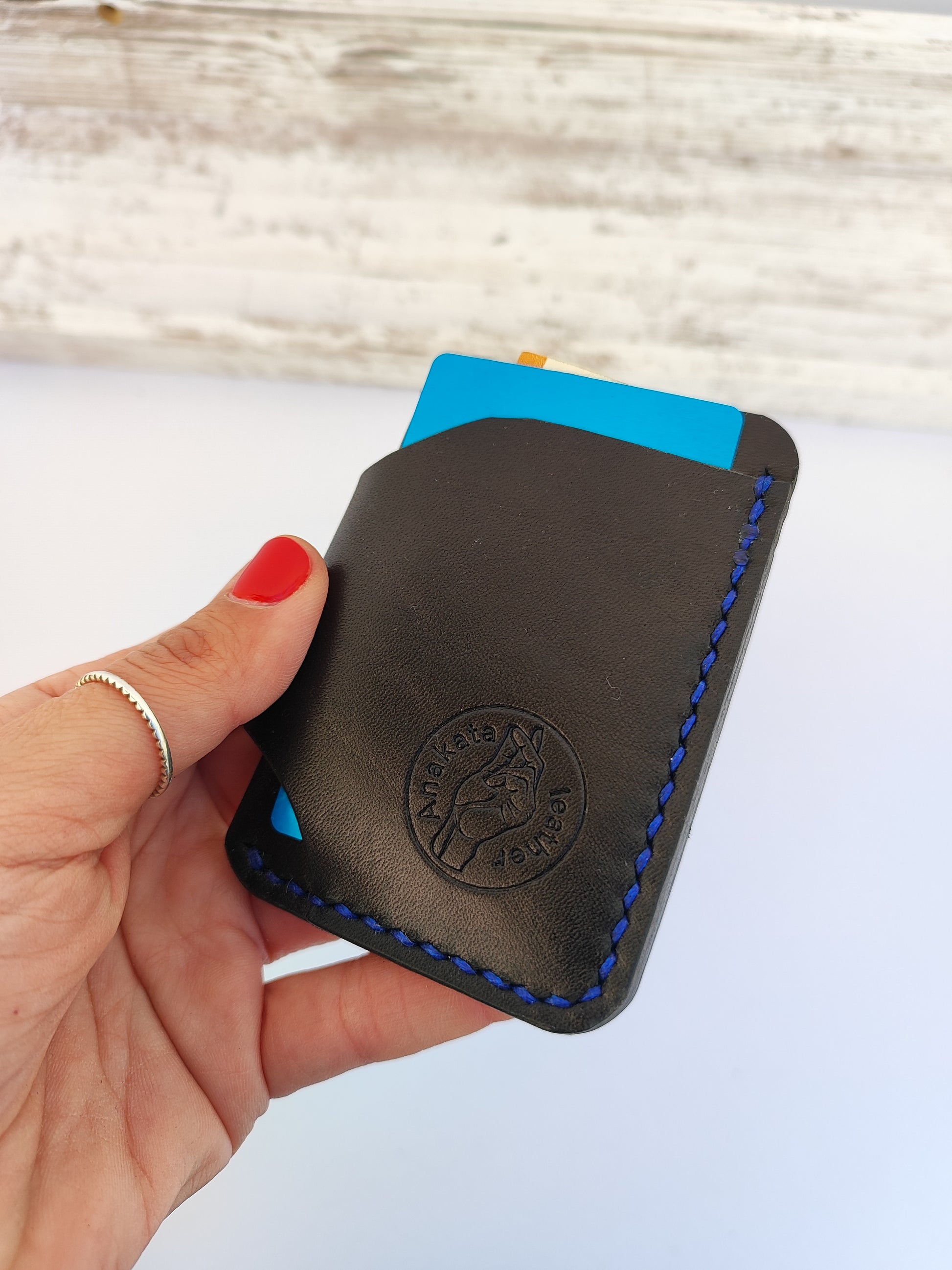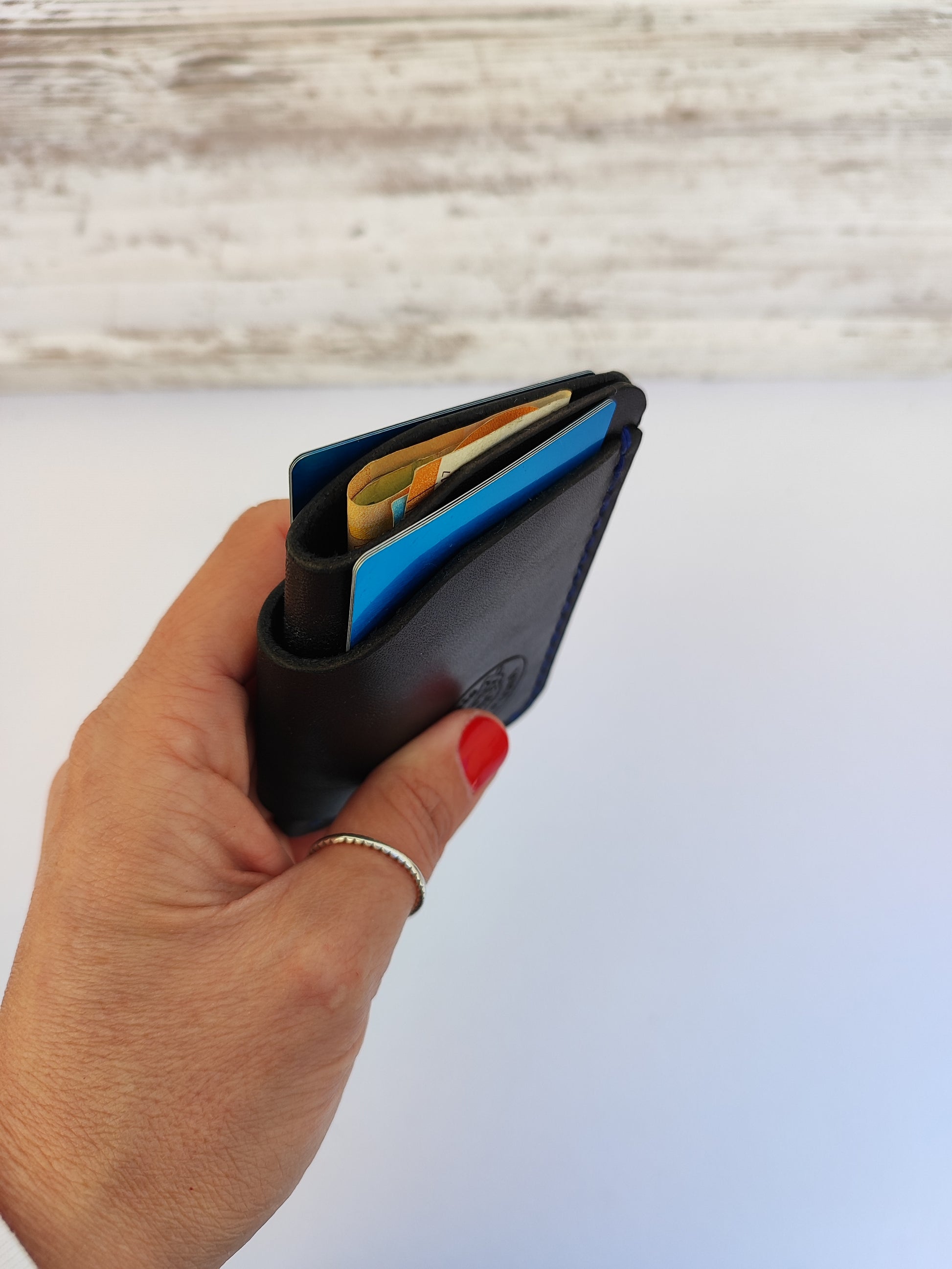 Hobbit δερμάτινο πορτοφόλι ''μαύρο με μπλε κλωστή''