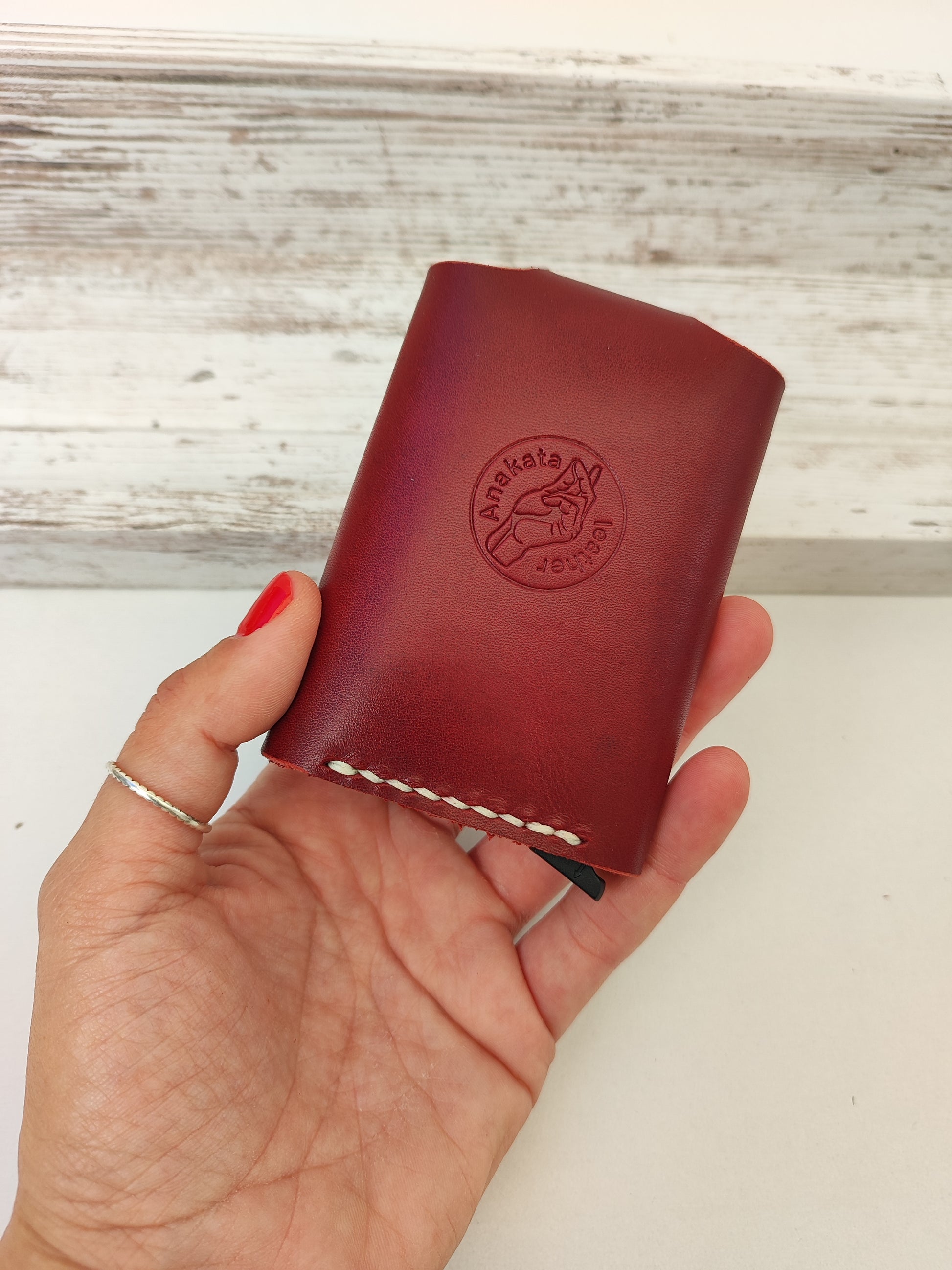 ''James Bond'' χειροποίητο δερμάτινο πορτοφόλι - μπορντό.