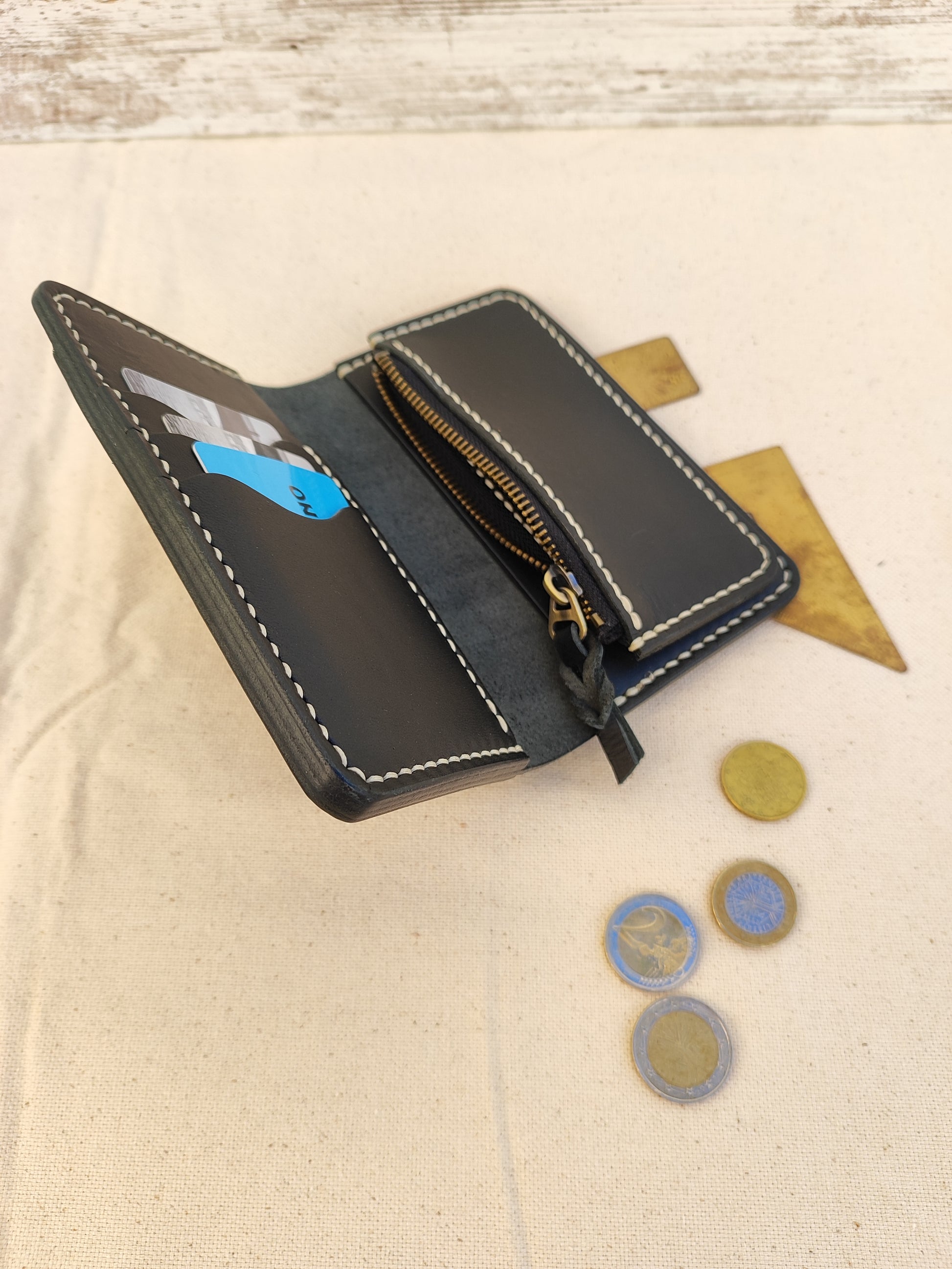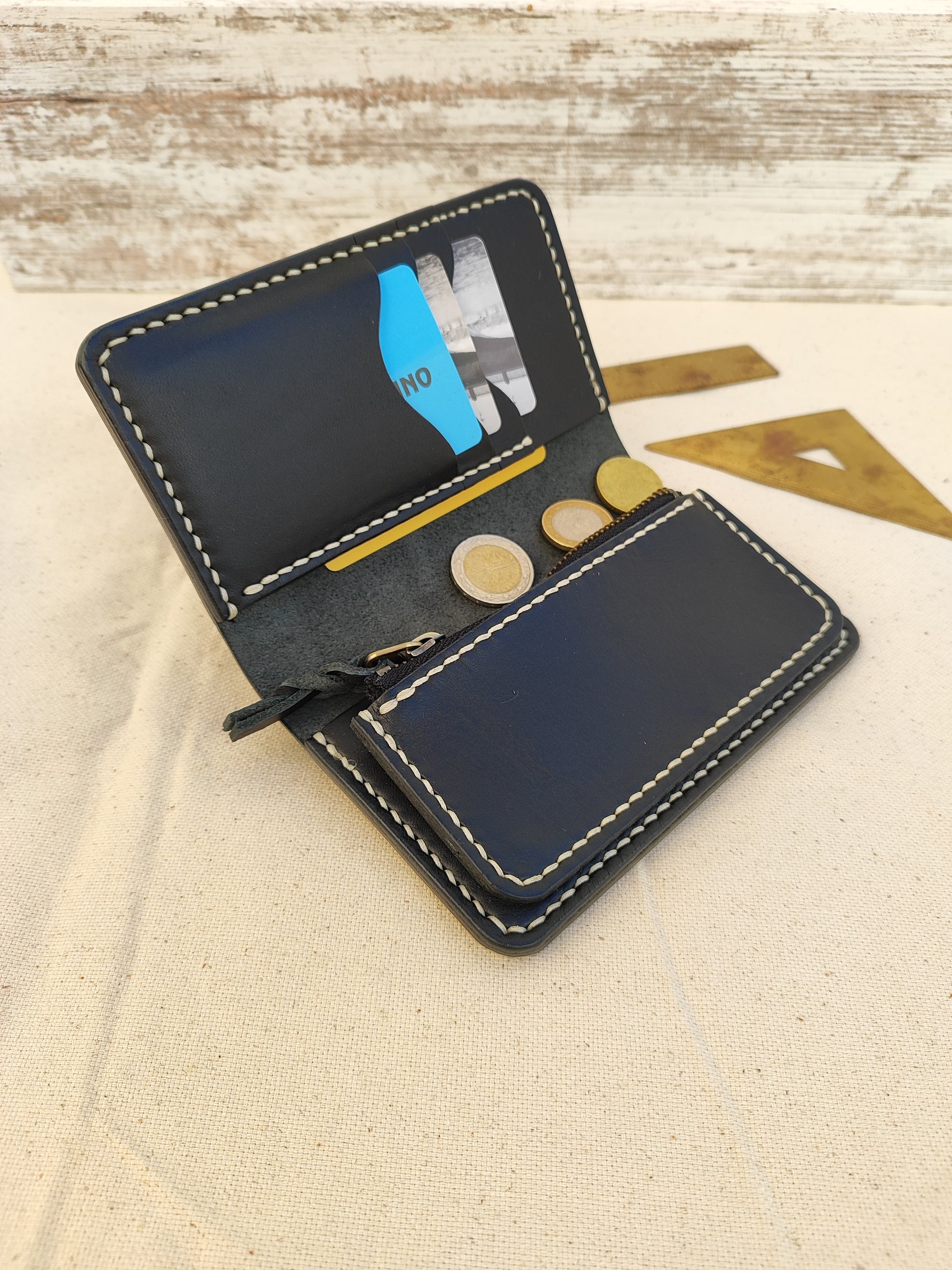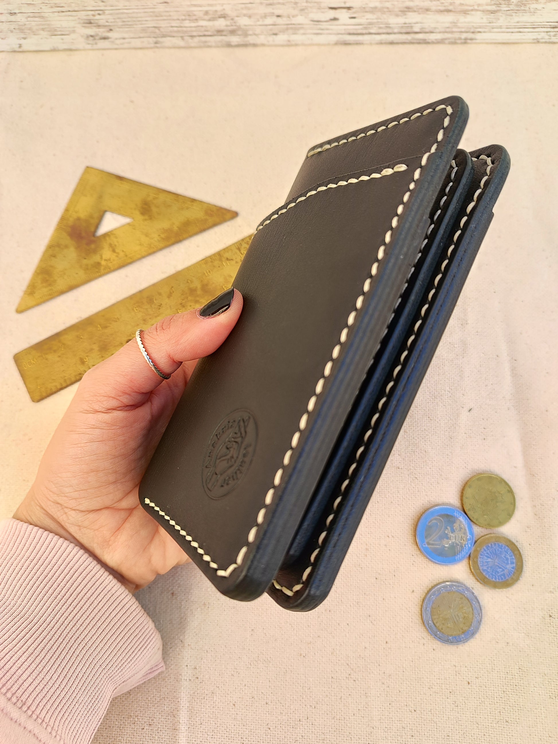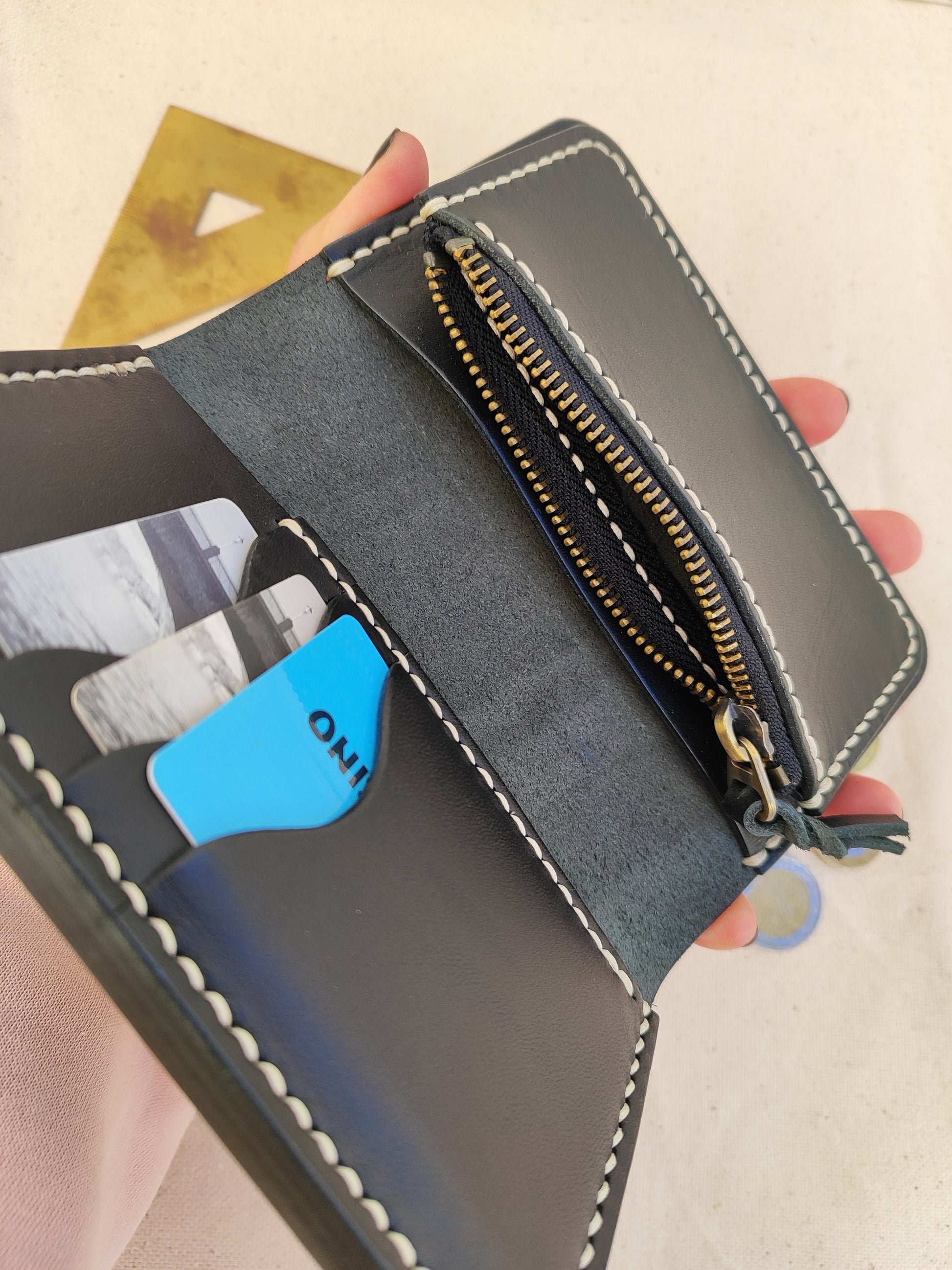 Διαθέτει μια θήκη για χαρτονομίσματα, μια μικρή θήκη με φερμουάρ για κέρματα, 2 θήκες για μικρά έγγραφα ή ταυτότητα και 3 θήκες για κάρτες