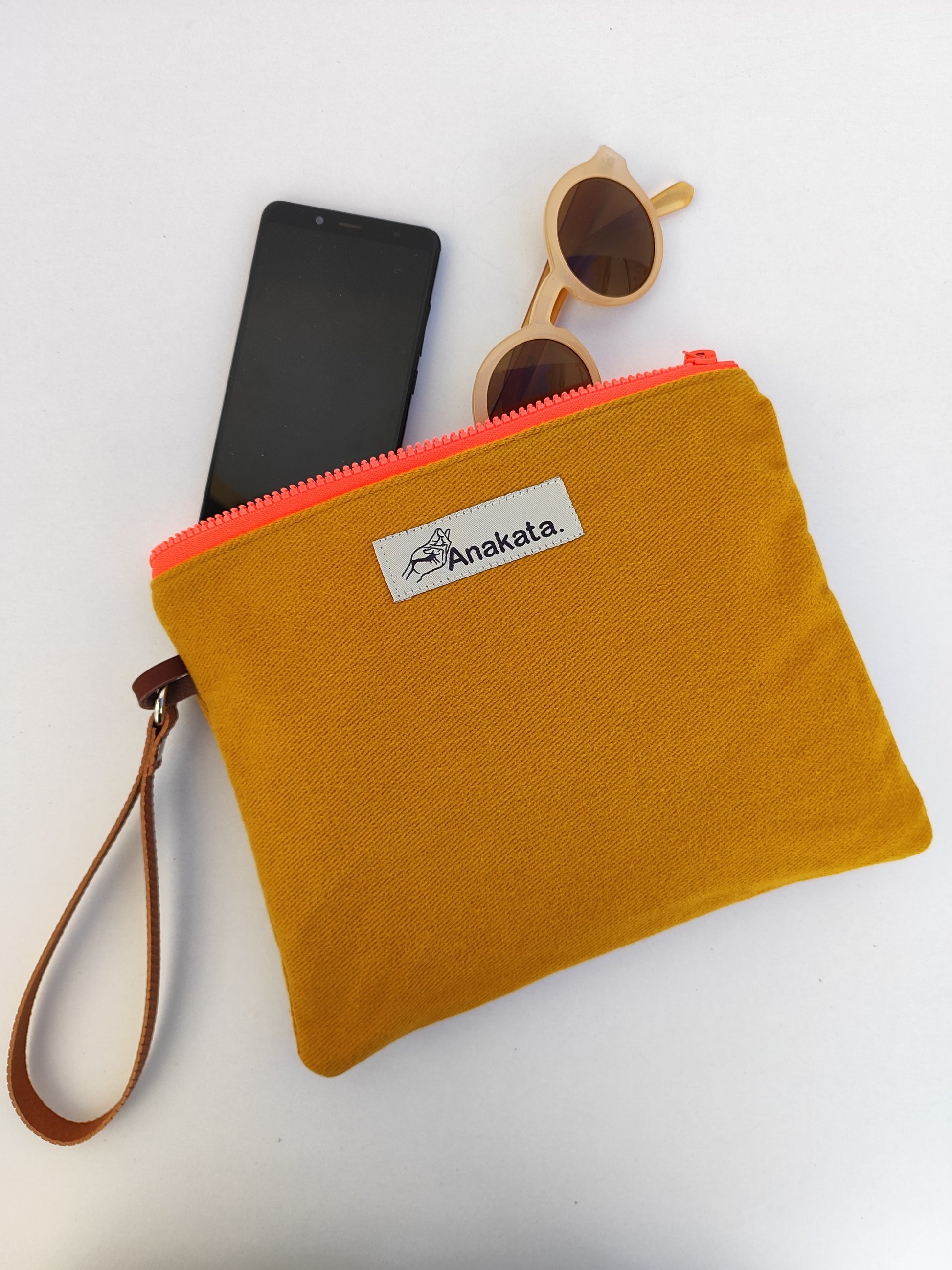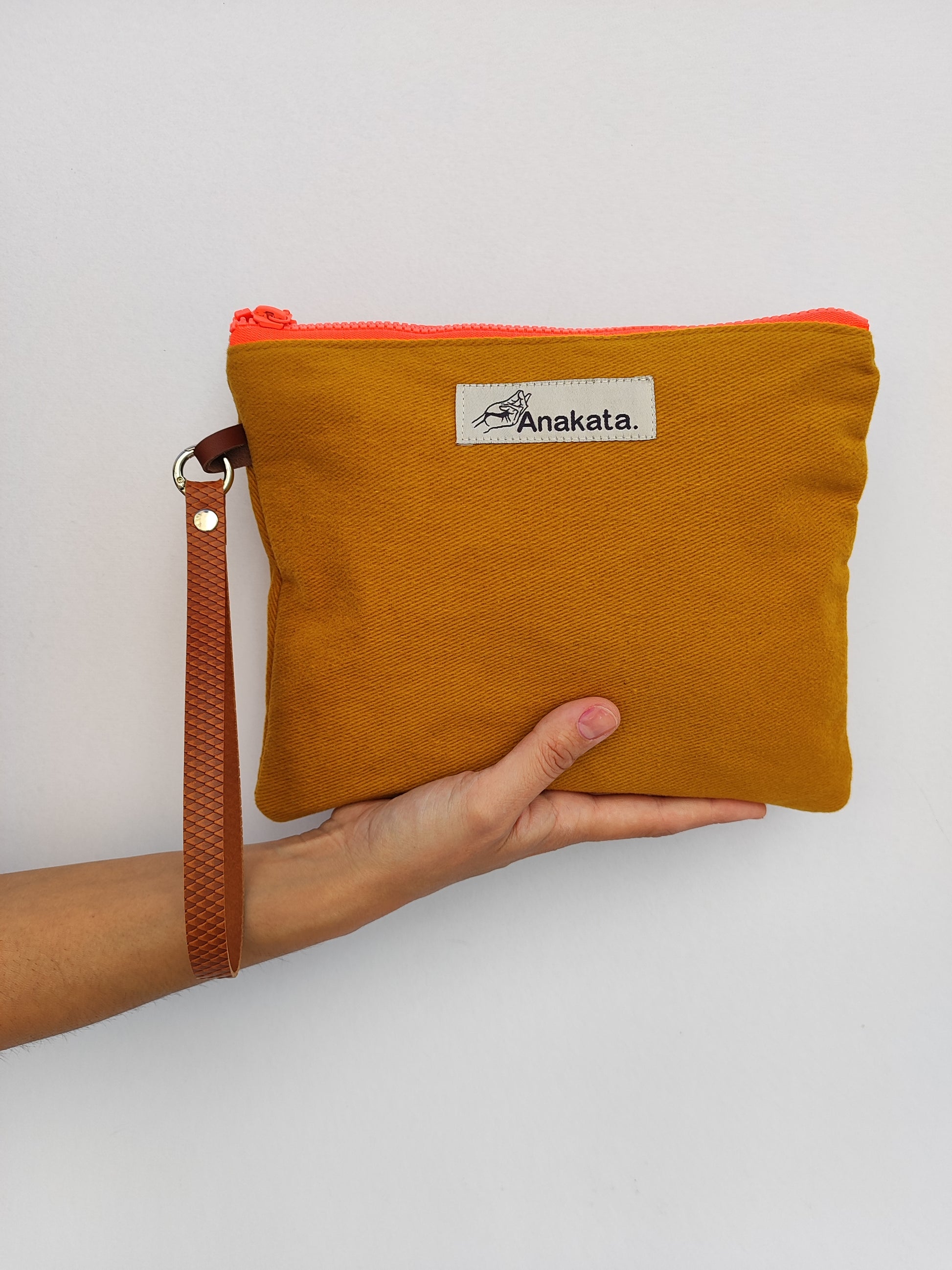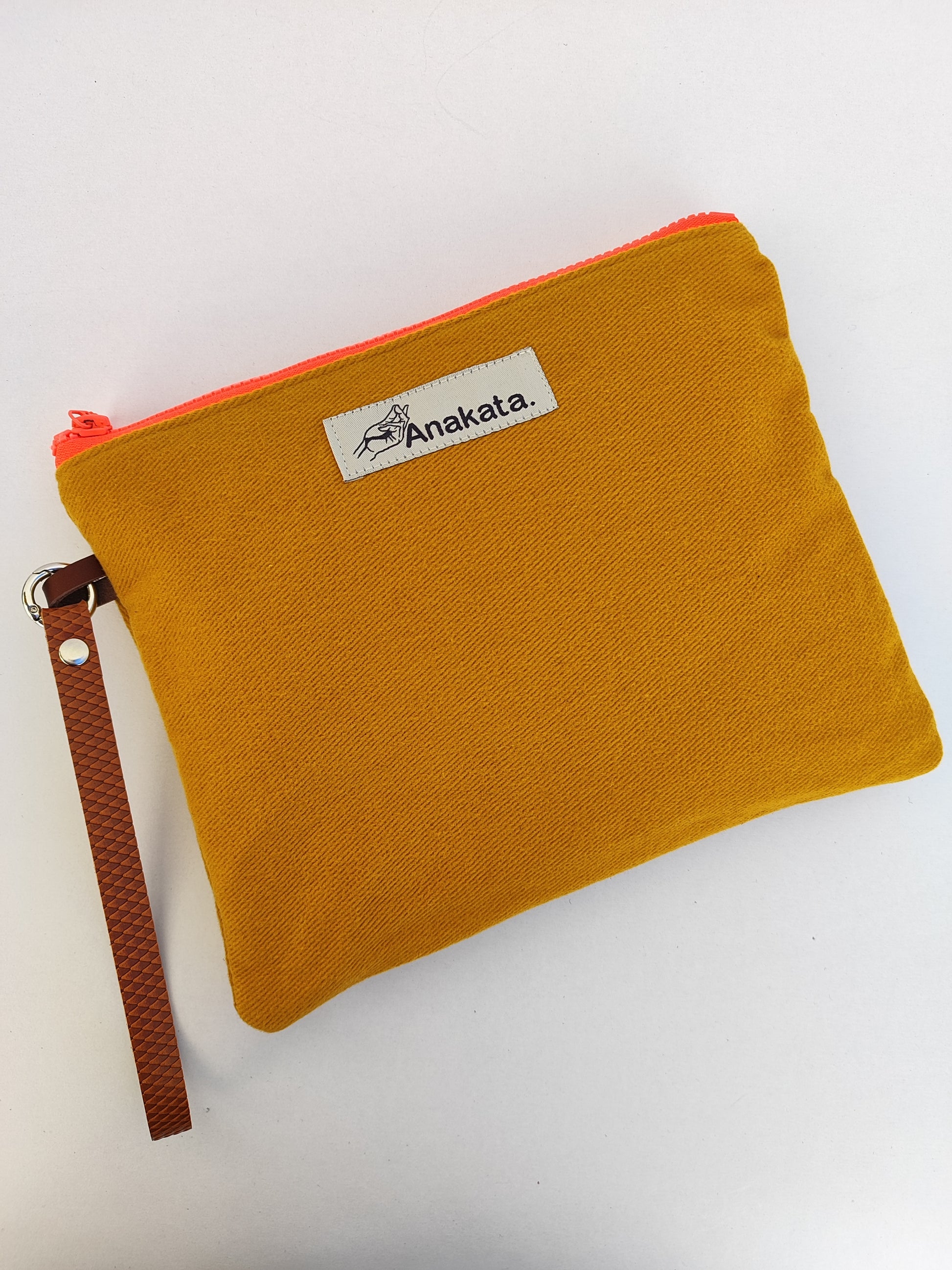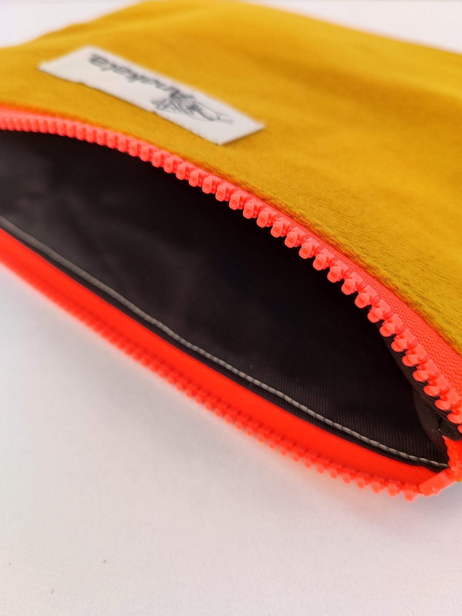 Χειροποίητο τσαντάκι με φερμουάρ ''μουσταρδί, κοτλέ''